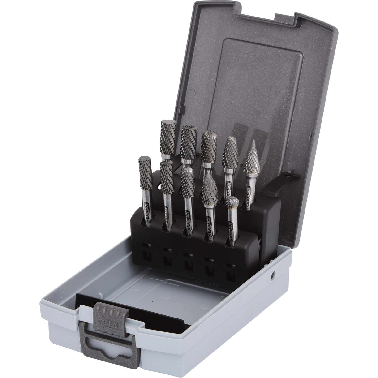 1x KS TOOLS HM Frässtift-Satz, Kunststoffkassette, 10-tlg