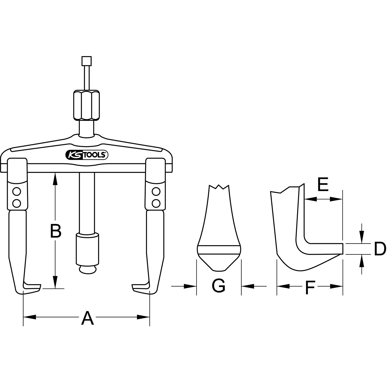 - durch Umstecken der Haken als Innen- und Außen-Abzieher verwendbar