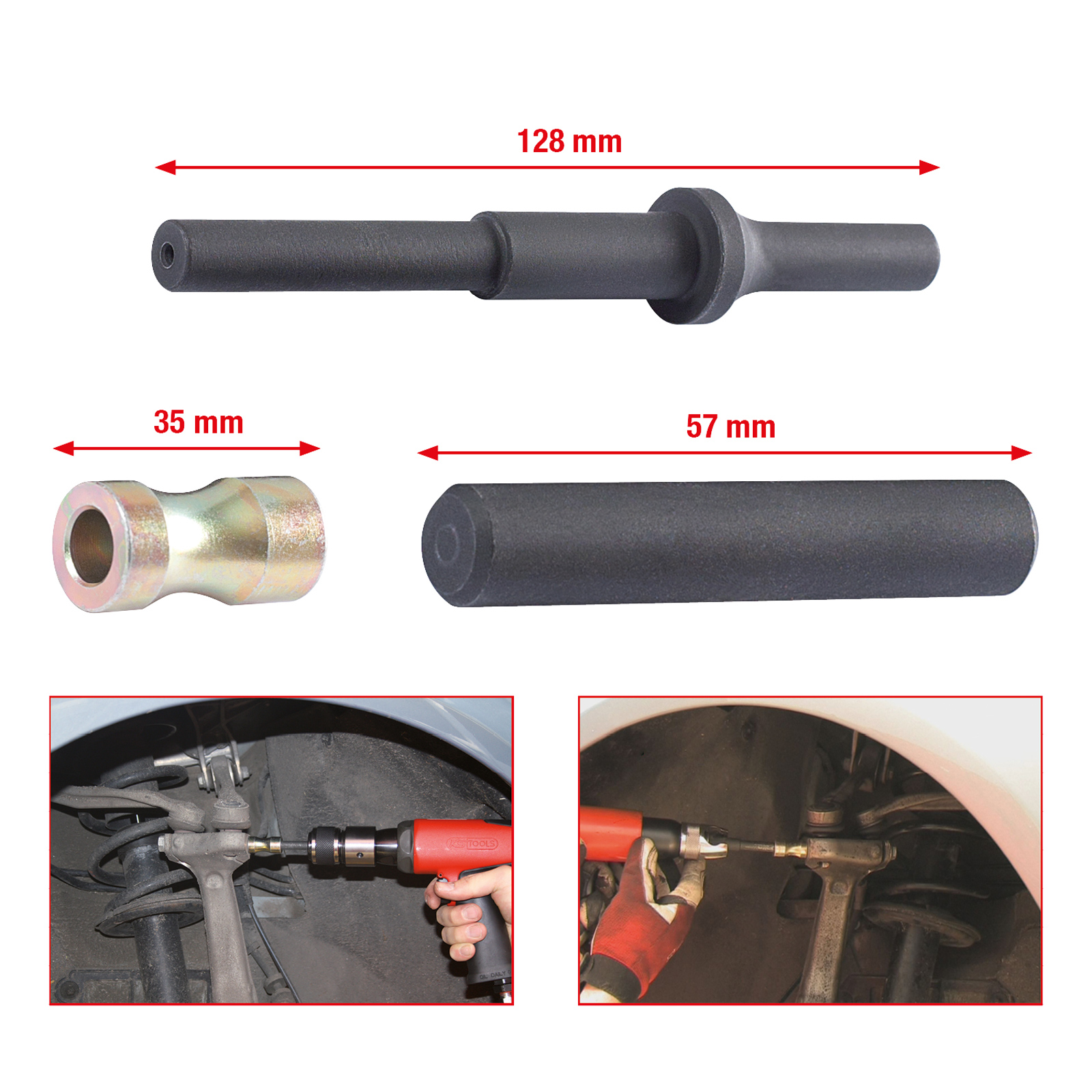 - zum Austreiben der Klemmschraube in der Vierlenkervorderachse speziell bei VAG Fahrzeugen