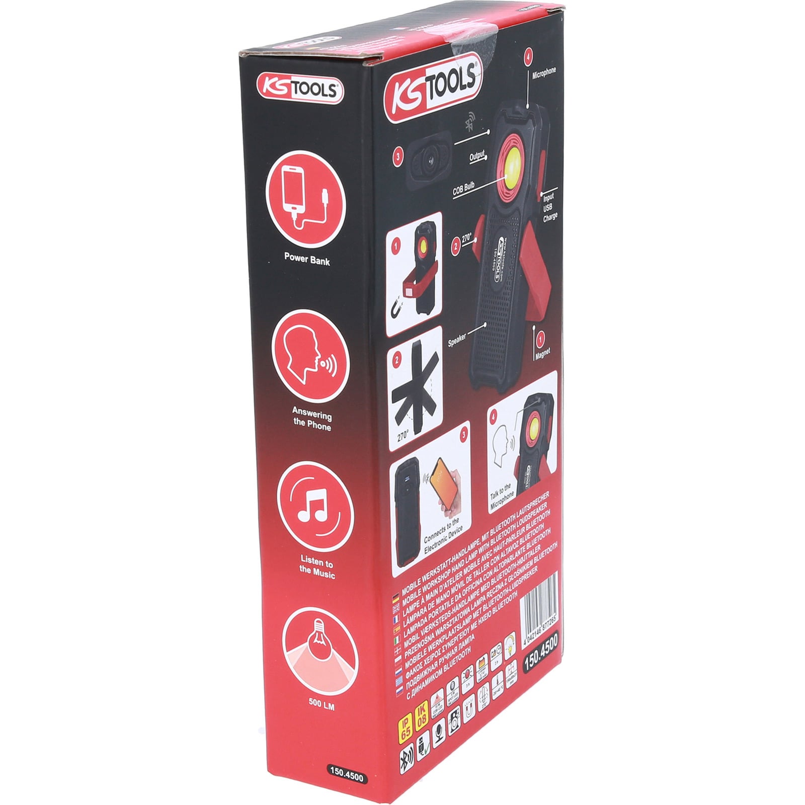 - 1x KS TOOLS Mobile Werkstatt-Handlampe 500 Lumen mit Bluetooth Lautsprecher knickbar