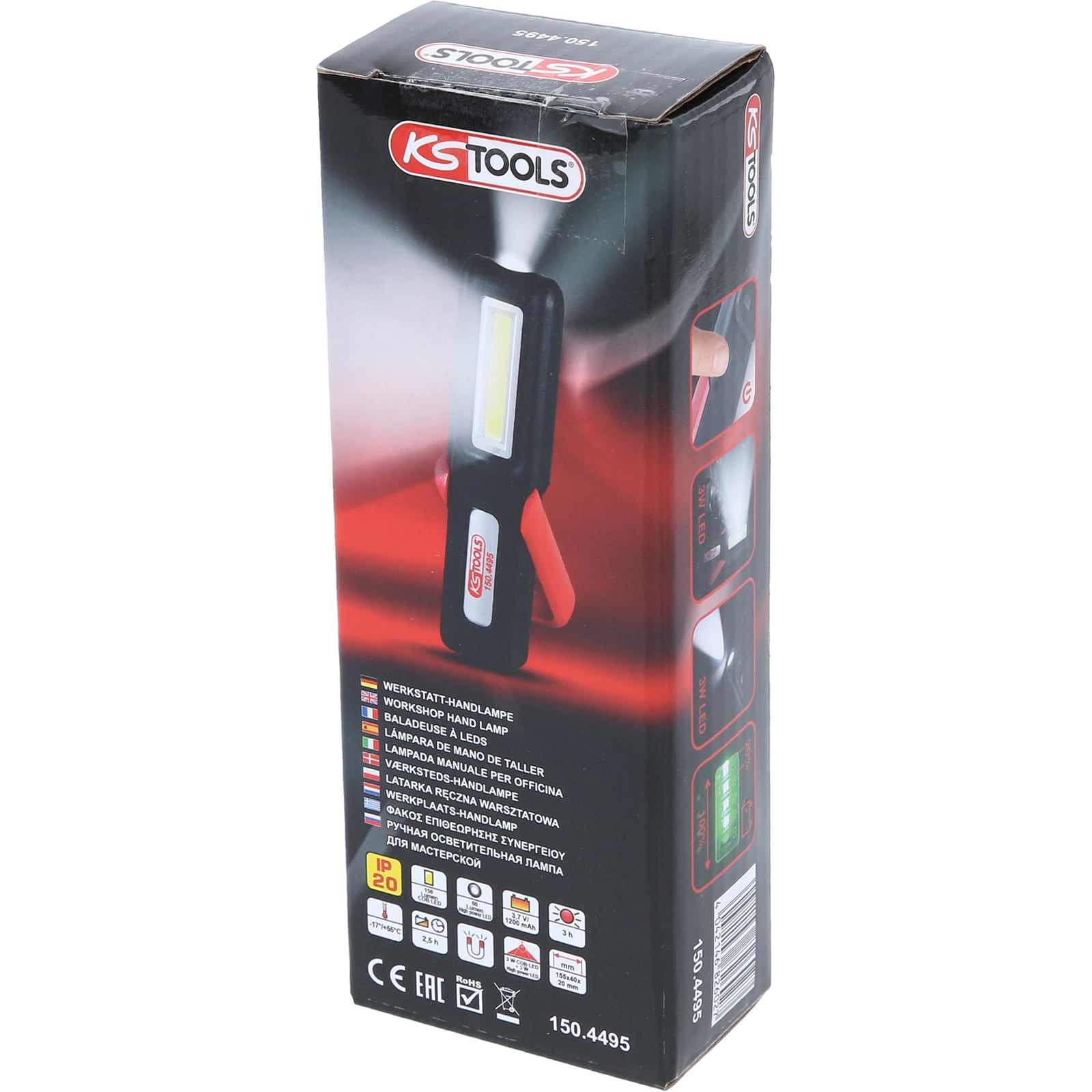 1x KS TOOLS Mobile Werkstatt-Handlampe knickbar 3 Watt COB LED