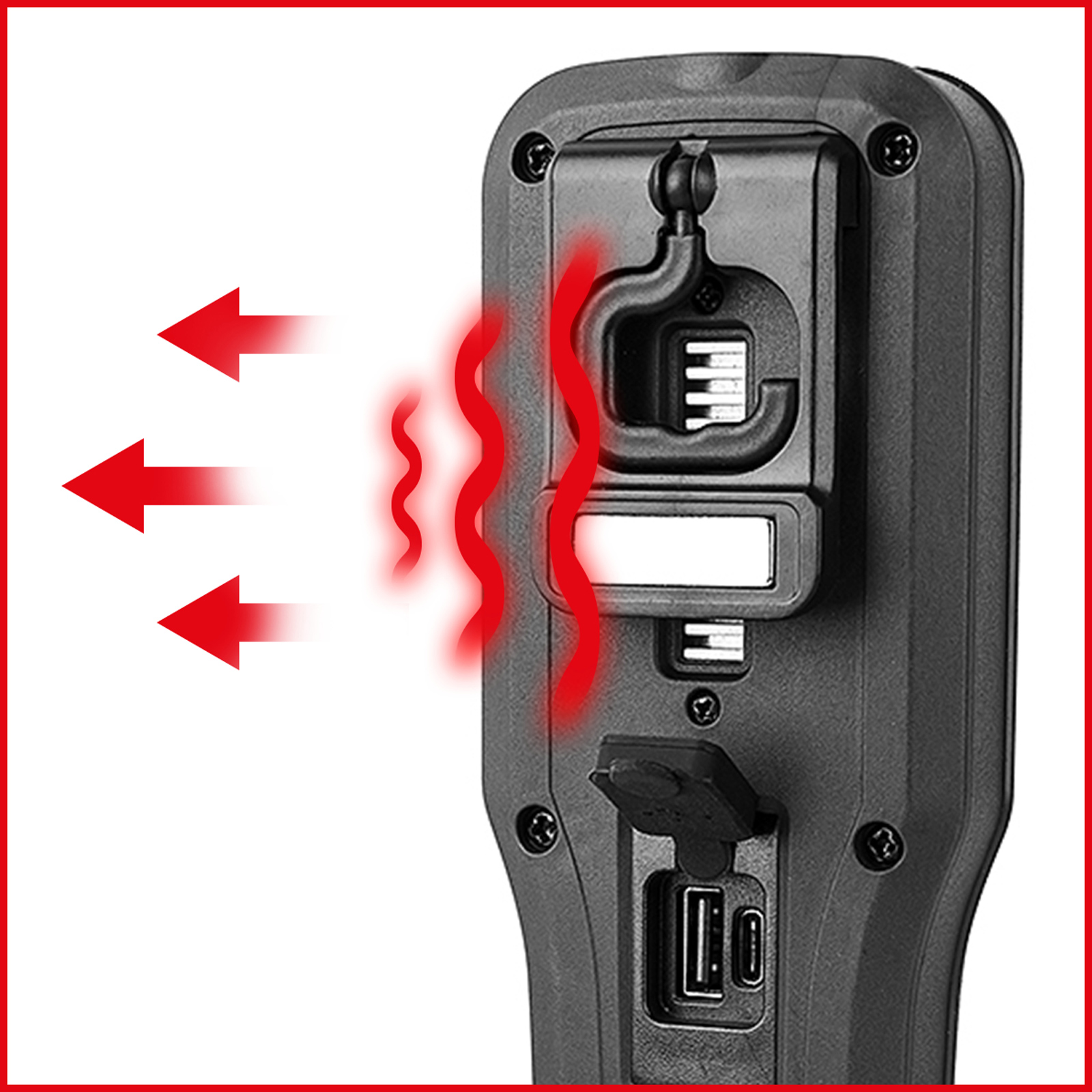 - Wärmeabfuhr durch Kühlrippen an der Rückseite