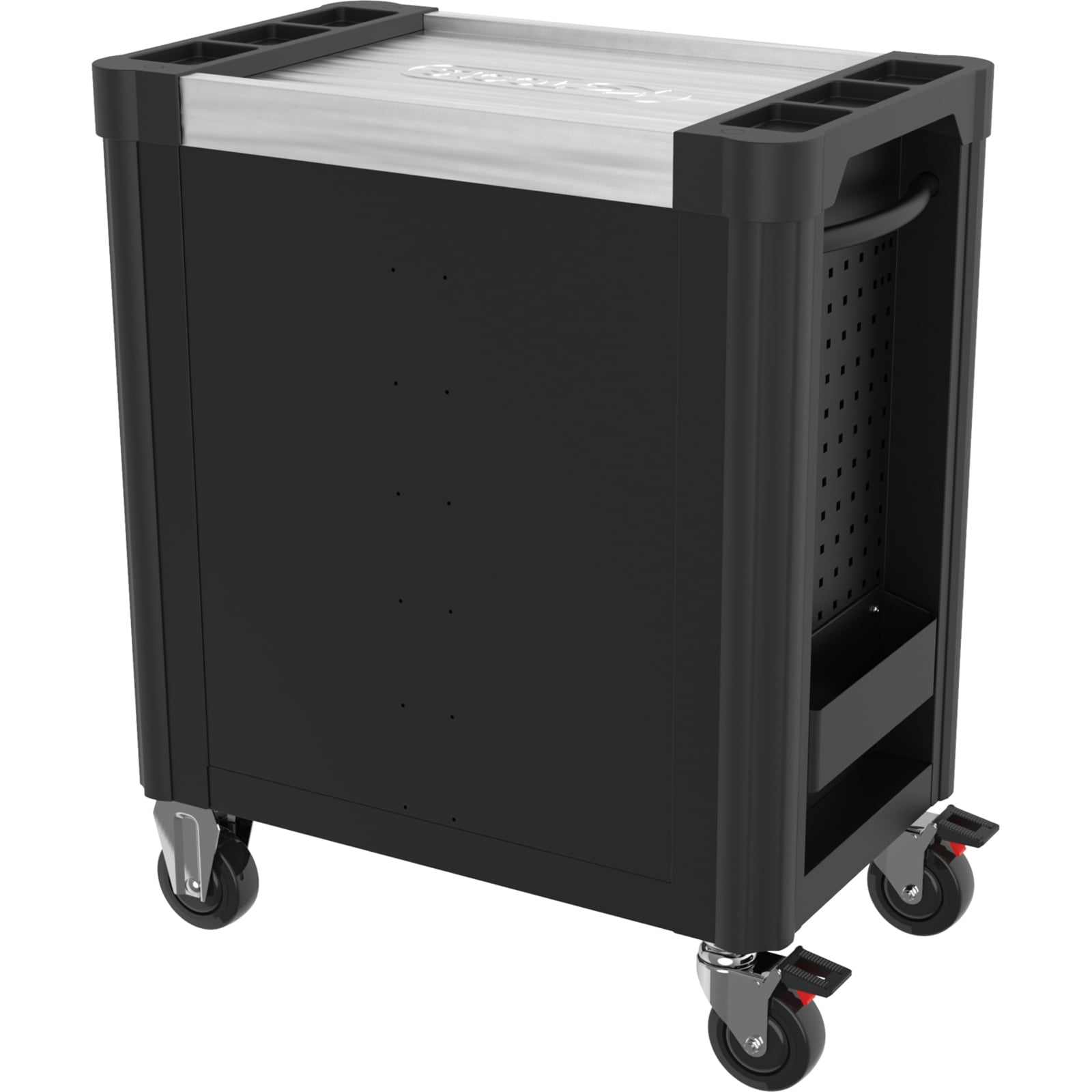 - mit 2 Lenkrädern à Ø 125 mm mit Roll- und Drehbremse