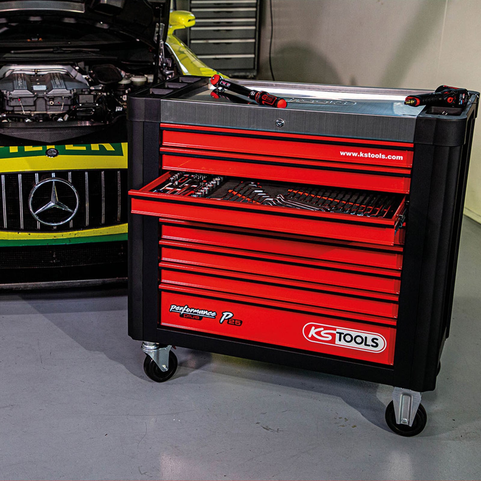1x KS TOOLS PERFORMANCEplus P25 SCHWARZ/ROT Werkstattwagen mit 8 Schubladen