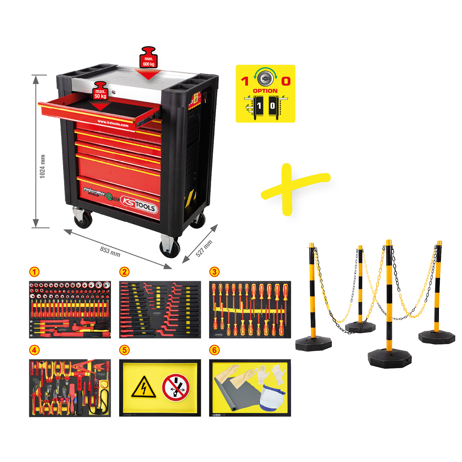 1x KS TOOLS PERFORMANCEplus Werkstattwagen e10 mit 164 isolierten Werkzeugen für Hybrid- und Elektrofahrzeuge