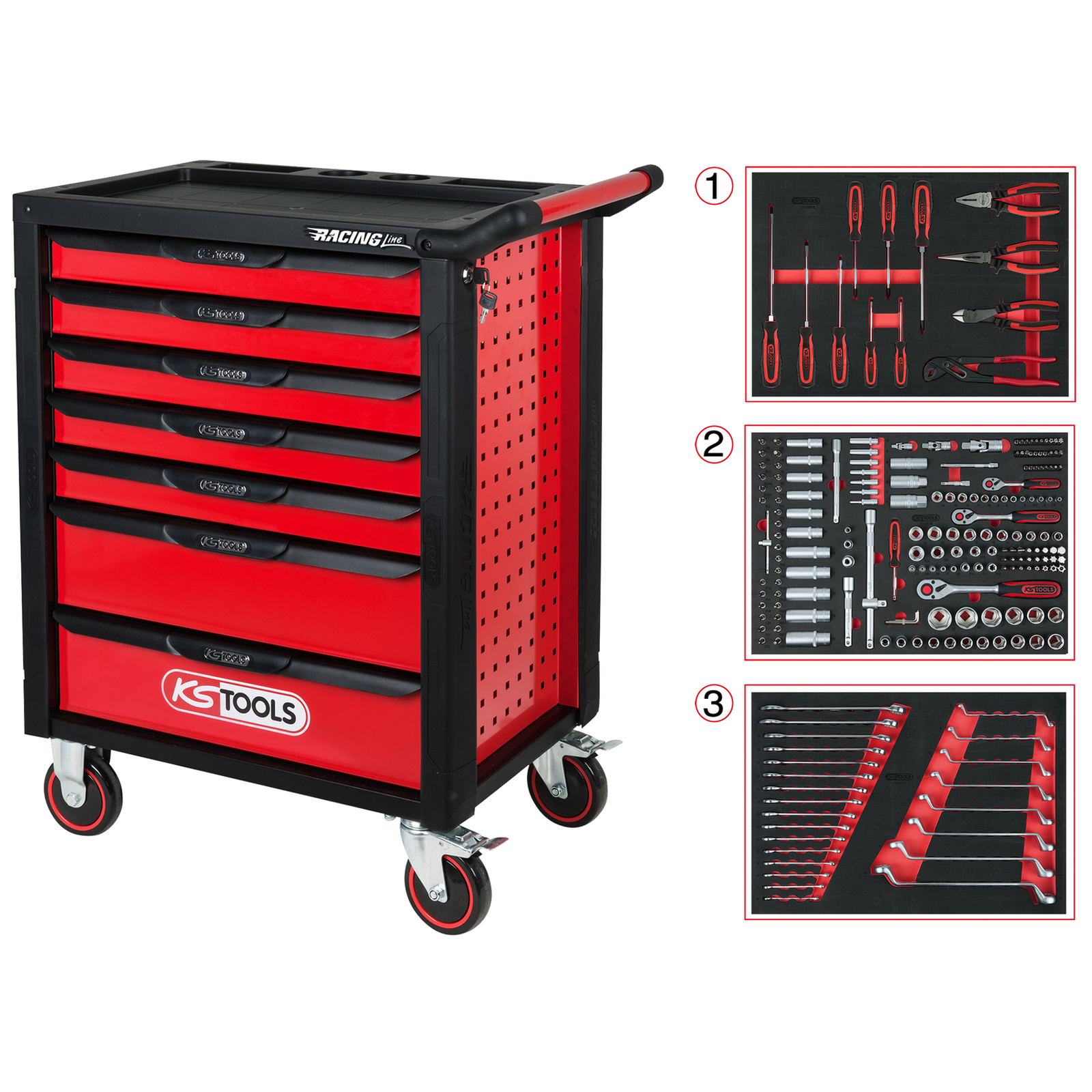 1x KS TOOLS Racingline schwarz/rot Werkstattwagen mit 7 Schubladen