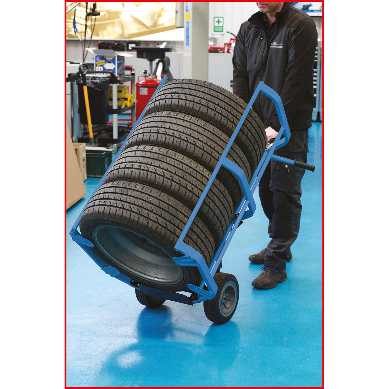 - zum mühelosen Aufnehmen und Transportieren von Reifen und Felgen