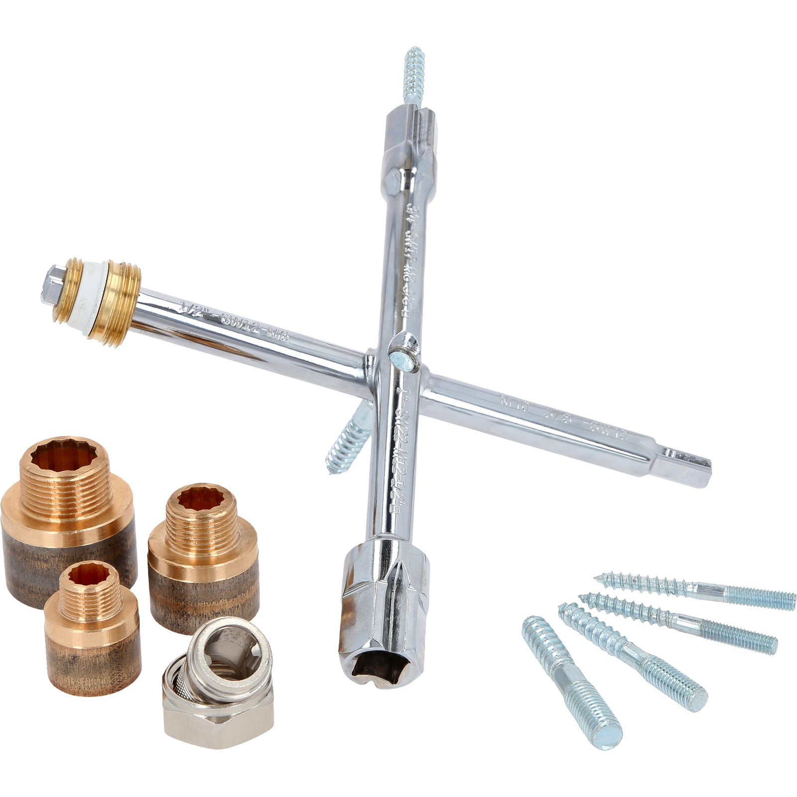 - 4 x Außen-Sechskant 3/8“, 1/2", 3/4“ + 1“ zum Ein- und Ausbauen von Heizkörperventilen und Rücklaufverschraubungen
