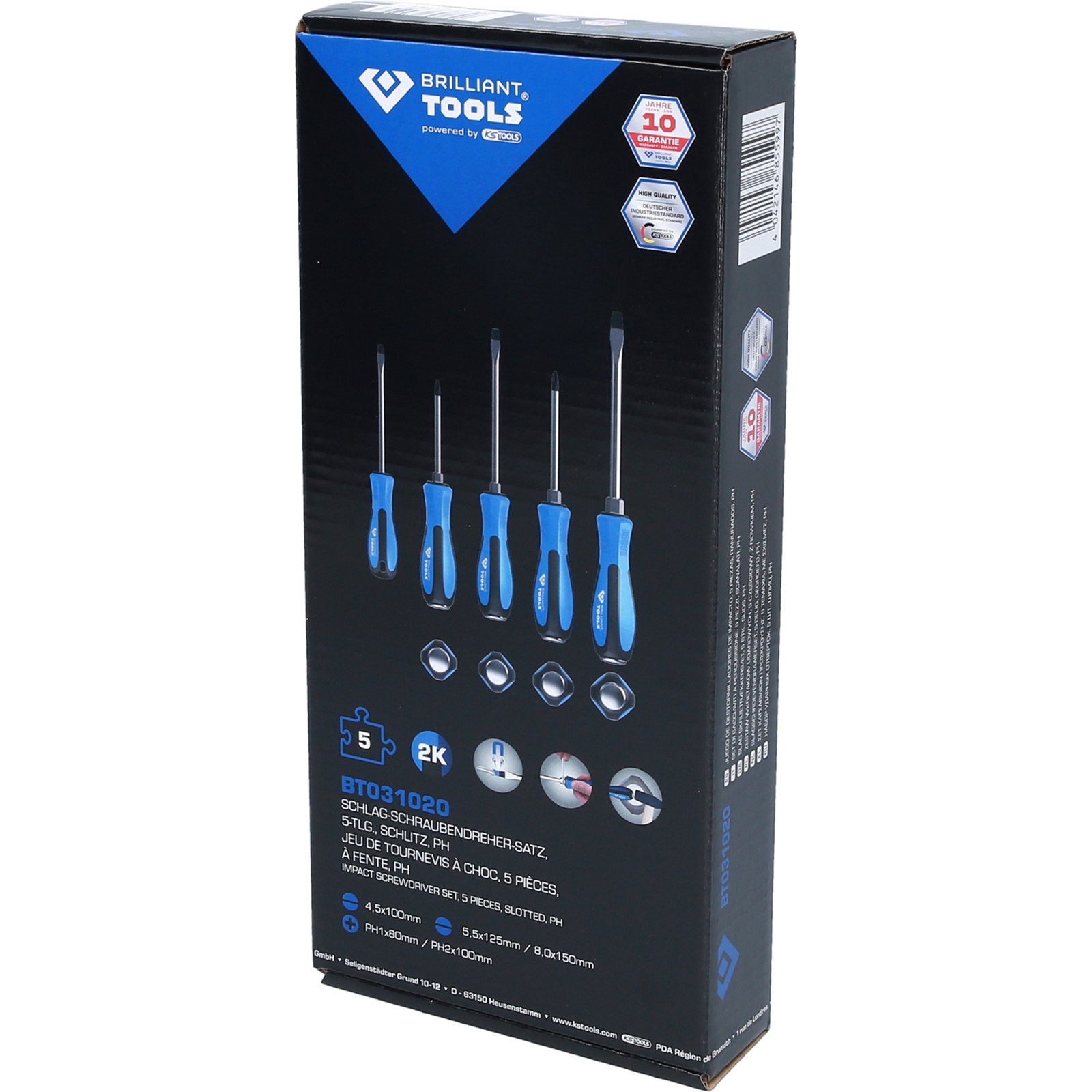"BRILLIANT TOOLS Schraubendreher-Satz mit Schlagkappe 5tlg. Schlitz PH Phillips - BT031020"