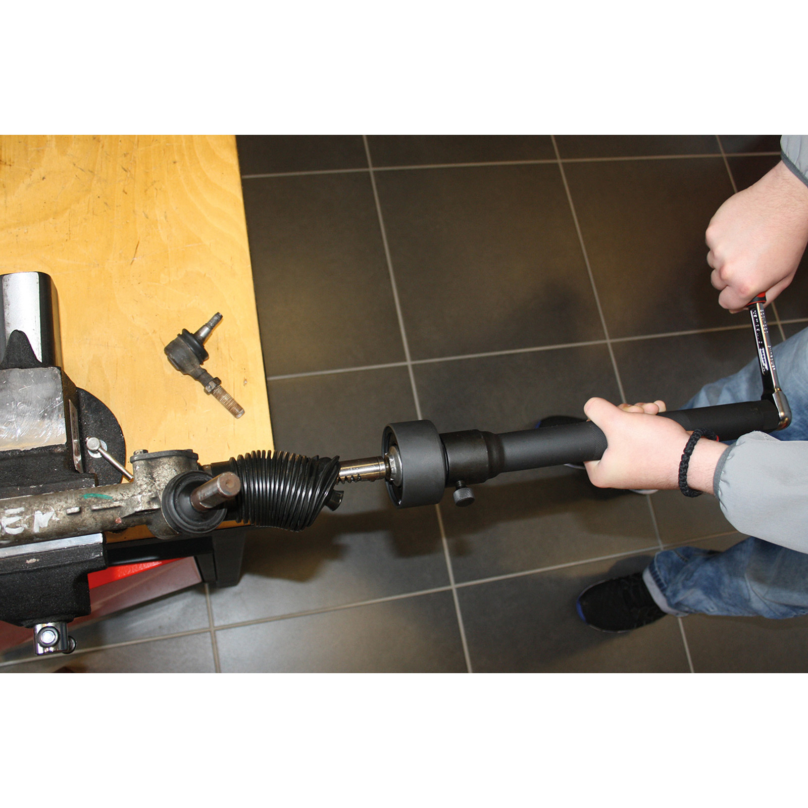 Höchste Zeit für eine Kontrolle der Spurstange inklusive Spurstangenköpfe, um die Sicherheit im Straßenverkehr zu gewährleisten! Wir bieten hier einen Satz Profi-Werkzeug im praktischen Koffer an: Spezialwerkzeug in qualitativ hochwertigster Ausführung, für einen schnellen und fachgerechten Austausch des Spurstangenaxialgelenks an Pkw und Transportern. Die Spurstange kann je nach Fabrikat oder Hersteller eine unterschiedliche Länge haben, die Spurstangenköpfe variieren in ihrer Größe. Mit diesem 3-teiligen Set sind Sie bestens ausgerüstet, auch für Montage von längeren Spurstangen. Dieser Spezialschlüssel zur Montage und Demontage von Spurstangen beinhaltet 3 aufschraubbare Aufsätze für Spurstangengröße 30 - 35 mm / 35 - 40 mm/ 40 - 45 mm, mit automatischer Klemmung der Gelenkköpfe. Damit wird ein großer Einsatzbereich abgedeckt. Im praktischen Kunststoff-Aufbewahrungskoffer ist das Spezialwerkzeug jederzeit griffbereit.