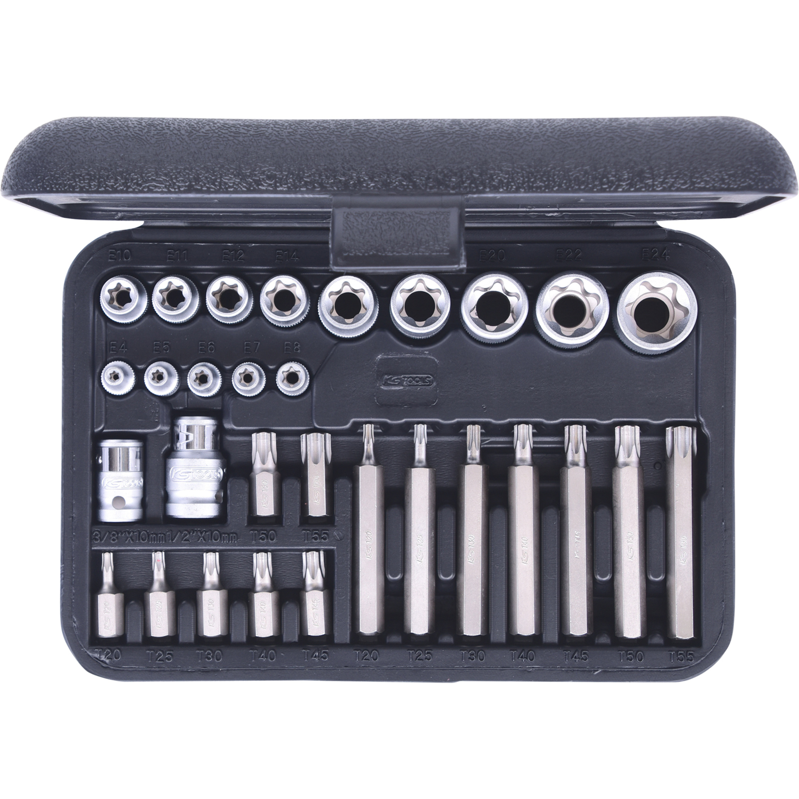 1x KS TOOLS Torx-Steckschlüssel- und Bit-Satz 30tlg. Bits mit Bohrung