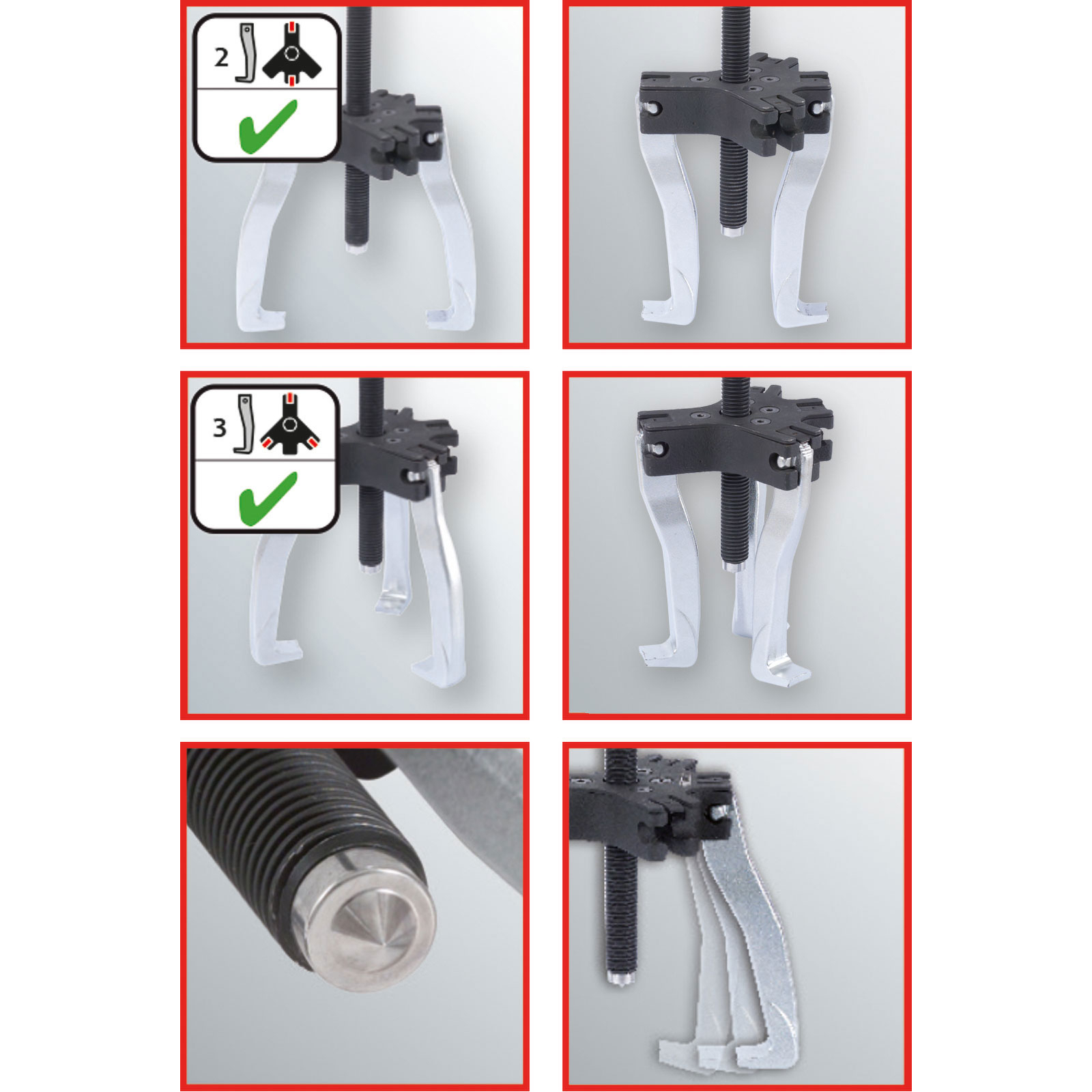 - durch Umstecken der Haken als Innen- und Außen-Abzieher verwendbar