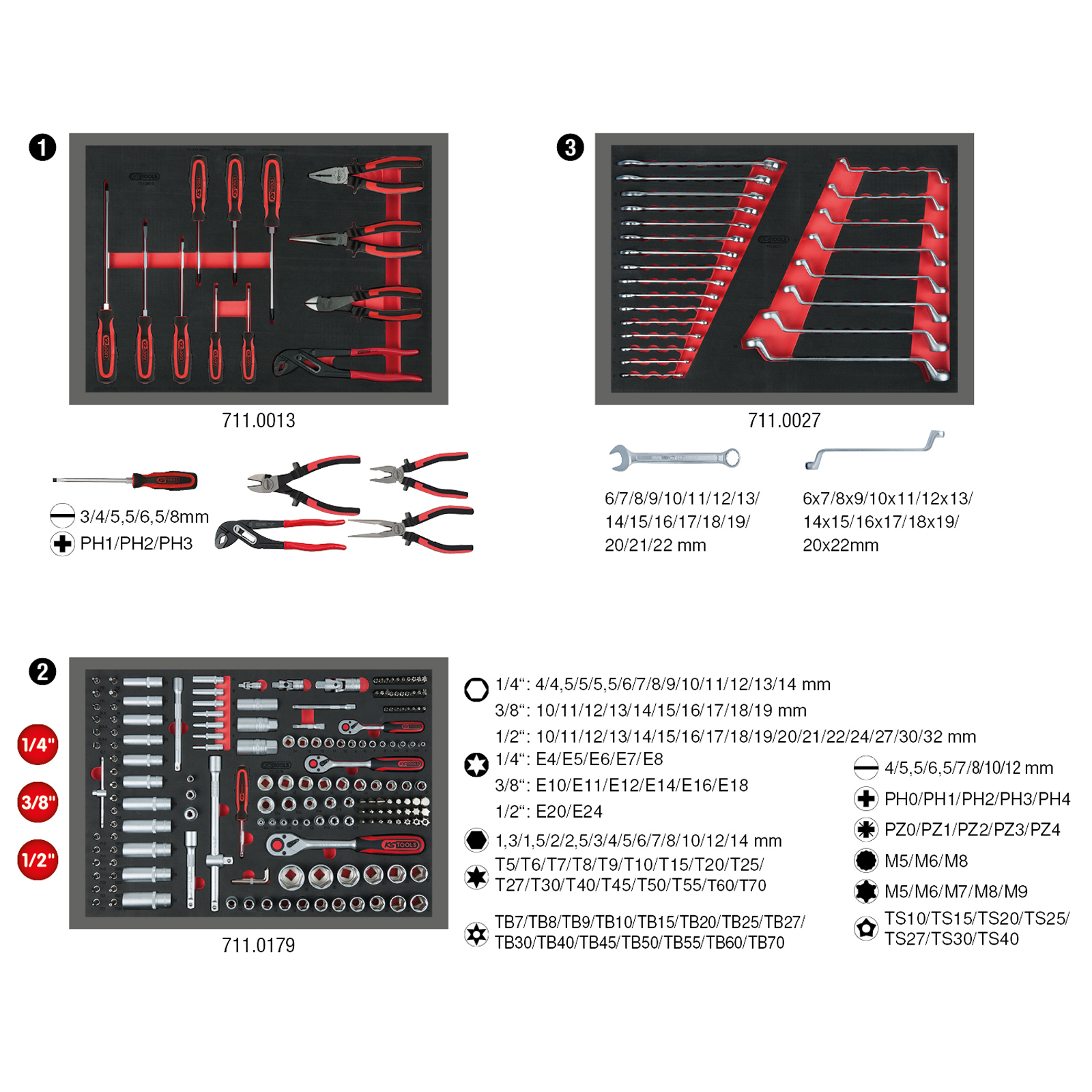 "KS TOOLS Universal-Systemeinlagen-Satz für 3 Schubladen mit 215 Premium-Werkzeugen - 713.0215"
