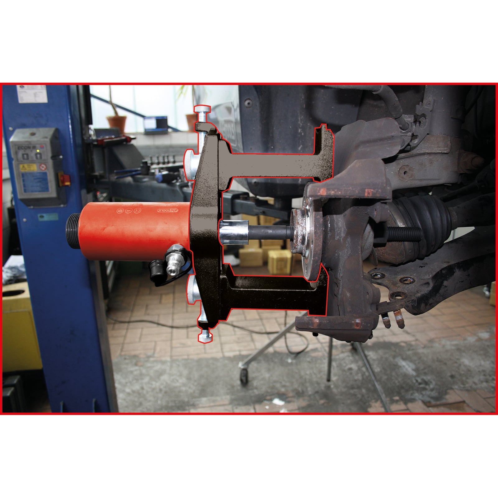 - zur Montage und Demontage von geschraubten und Kompakt-Radlagereinheiten mit 3 und 4 Bolzen an der Vorder- und Hinterachse