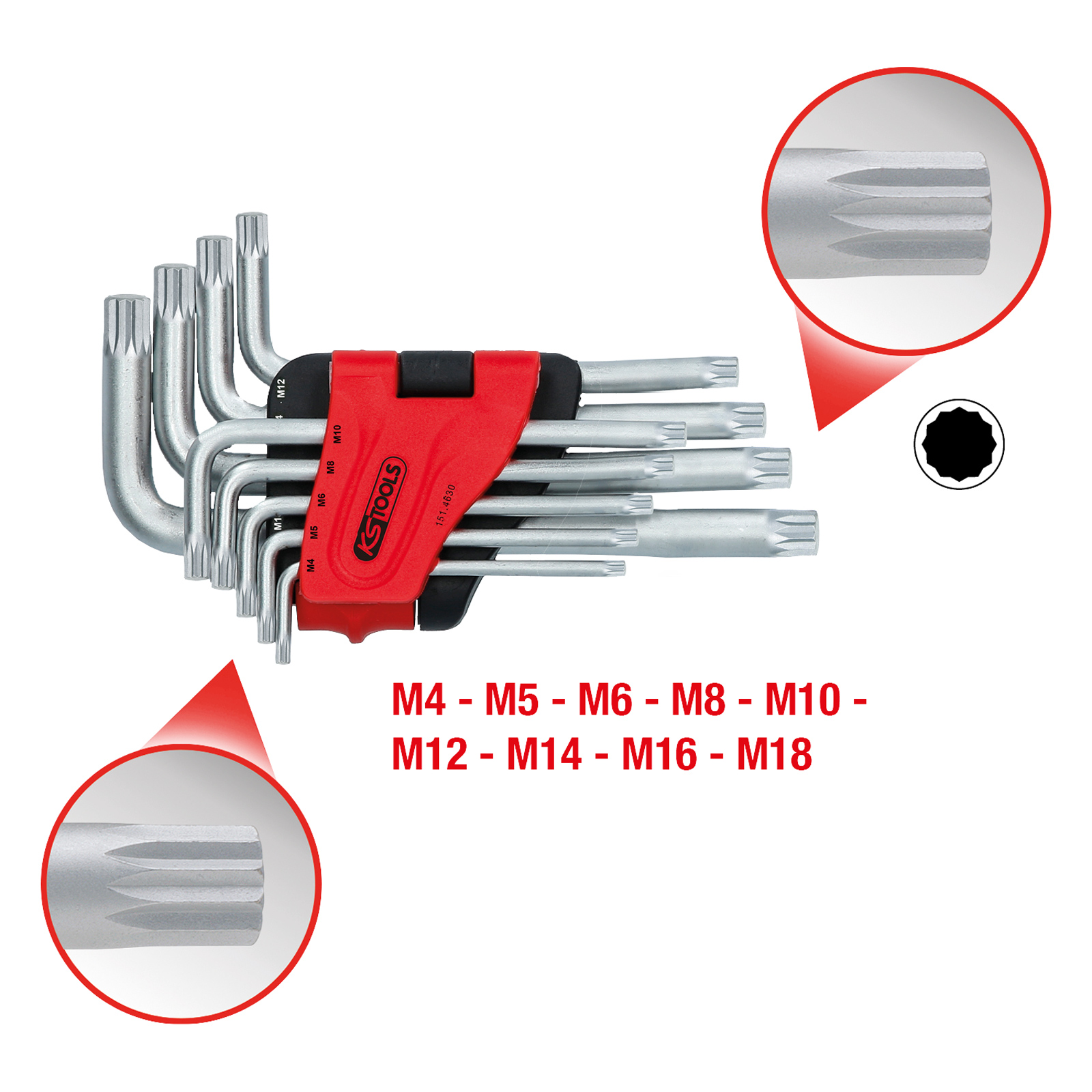 "KS TOOLS XZN-Winkelstiftschlüssel-Satz kurz 9tlg. - 151.4630"