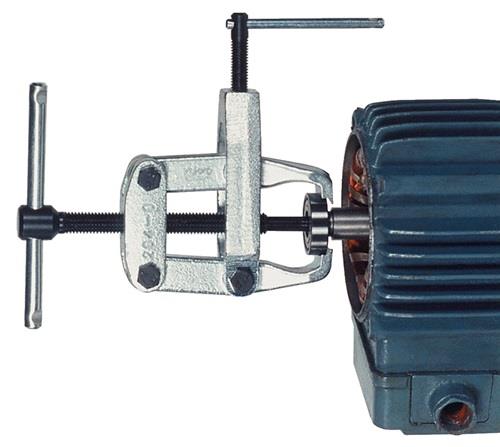 mit seitlicher Spannzwinge unentbehrlich zum Abziehen bündig anliegender Kugellager, Lagerringe und ähnlicher Teile in Feinmechanik, Elektrowerkstätten, bei Luftdruckinstandhaltung usw. die Krallen der Abzughaken greifen beim Anziehen der Spannzwinge unter das anzuziehende Teil und krallen dies bereits vor dem eigentlichen Abziehvorgang los