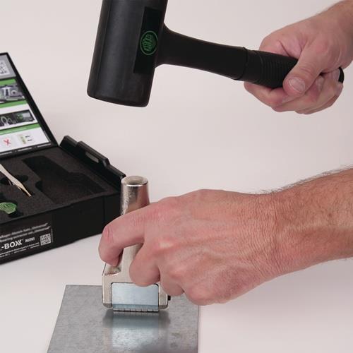 auswechselbare Schlagzahlen und Schlagbuchstaben (Typen) Normalschrift 0-9 und A-Z mit Halter und exakt gefräster Stempeltypen-Aufnahme Im Halter lassen sich mehrere Typen nebeneinandersetzen