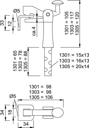 "KWS Torfeststeller 1301/1303/1305 GT schwarz 105mm 15x13mm - 1301.03"