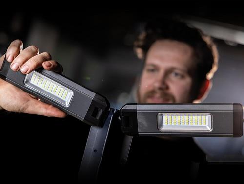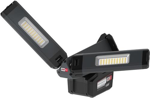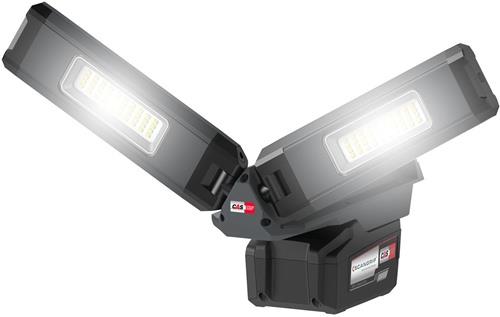 extrem leistungsstarke Arbeitsleuchte · extrem hohen Lichtleistung von bis zu 2500 Lumen · Lichtleistung in 2 Stufen einstellbar, 50 % und 100 % Weitere technische Eigenschaften: · Abstrahlwinkel: 180° · Ausführung: mit 2 flexiblen Leuchtenköpfen · prüfpflichtig: ja · Leuchtdauer: 4,5-9,5h