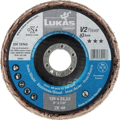 - LUKAS Fächerscheibe V2 POWER ZK Ø 125 mm K 40 flach Stahl Zirkonkorund