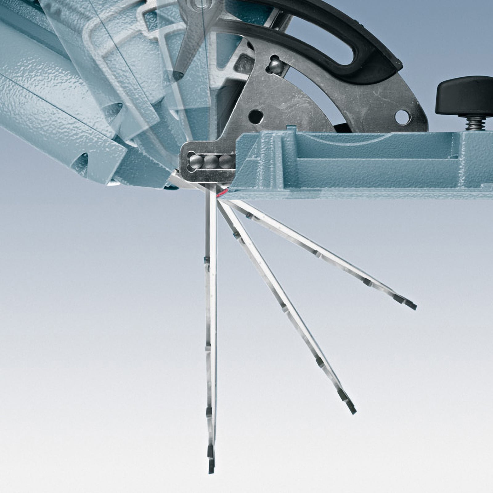 - Gehen Sie auf "Nummer Sicher": mit vielen nützlichen Details wie der Motorbremse oder der selbstschließenden Schutzhaube. Zudem besitzt der Ein- / Ausschalter eine zentral positionierte Einschaltsperre.