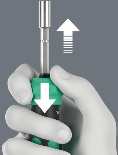 geeignet für Bits mit 1/4″-Außensechskantantrieb nach DIN ISO 1173-C 6,3 und E 6,3 und Wera Anschluss-Reihe 1 · im Griff integrierte Ratsche mit Feinverzahnung, intuitives Umschalten · für präzise Arbeiten kann die Ratschenmechanik mit der 0-Position deaktiviert werden · 1/4″-Innensechskantaufnahme, magnetisch · Edelstahlhülse · starker Dauermagnet · 6 BiTorsion Bits für lange Lebensdauer, zähhart, für den universellen Einsatz · Take it easy Werkzeugfinder: Mit Abtrieb-Farbkennzeichung und Größenstempel für einfaches Finden des gewünschten Bits · Kraftform-Griff mit Abrollschutz, mehrkomponentig, integriertes Magazin Weitere technische Eigenschaften: · Abrollschutz: ja · BiTorsion: ja · Icon links: Schlitz · Kraftform Griff: ja · Rückholwinkel: 6Grad · Take it easy Bits: ja · Teleskopklinge: ja · Umschalten Ratschenschraubendreher: ja