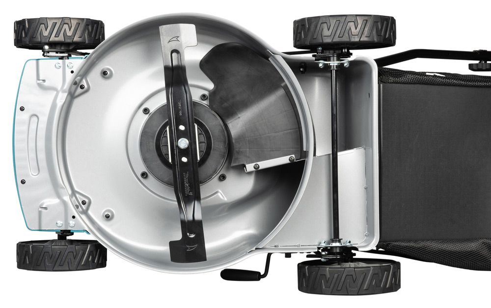 - Geräuscharmer 2x 18V Akku-Rasenmäher mit robustem Stahldeck für große Rasenflächen.