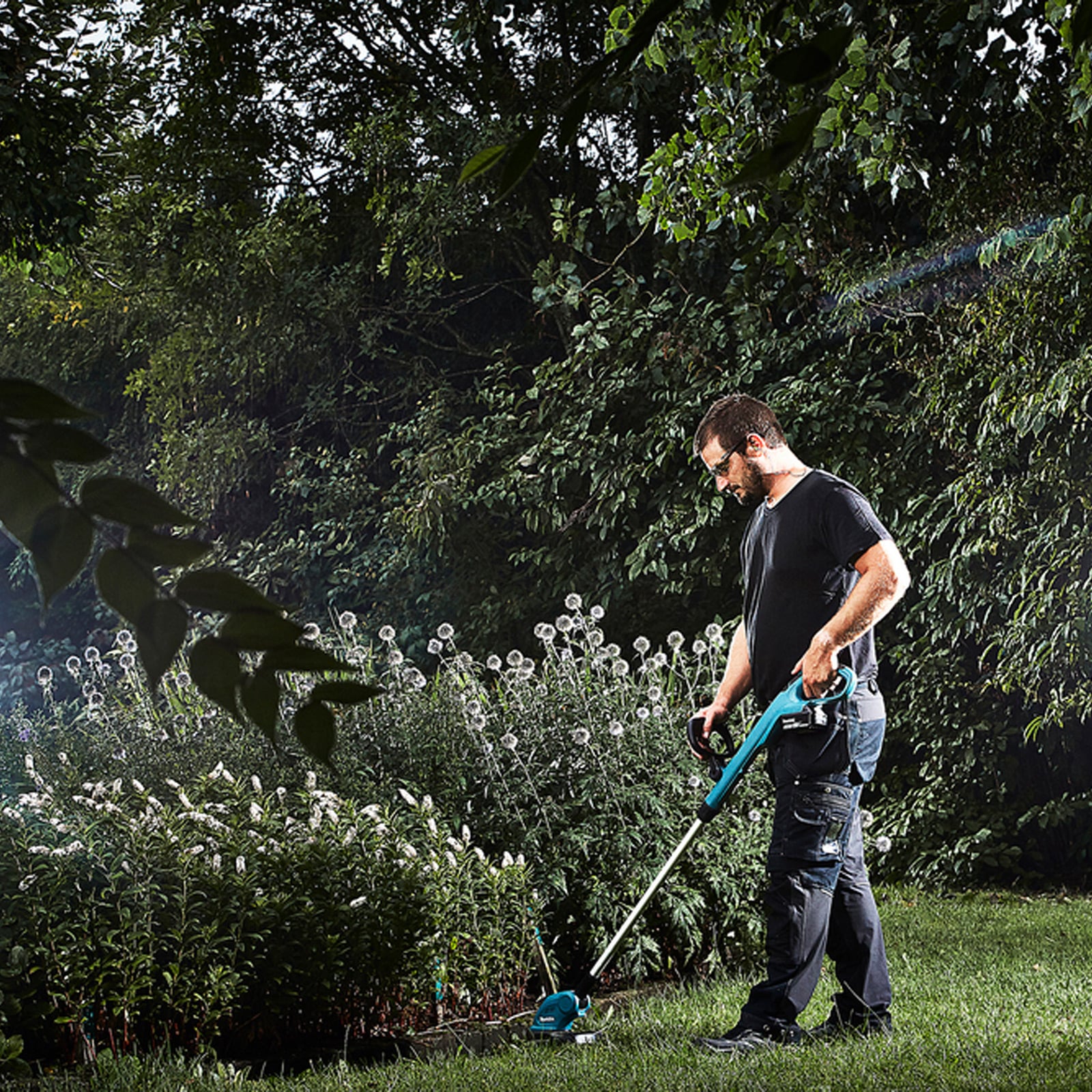 Ein kompakter und handlicher 18 V Akku-Rasentrimmer für den privaten Gebrauch. Dieses Gerät mit einer Schnittbreite von 260 mm ist ausgestattet mit einer Teleskopstange zum einstellen auf fast jede Körpergröße. Der Kopf ist um 180° drehbar und damit nutzbar als Rasenkantentrimmer.