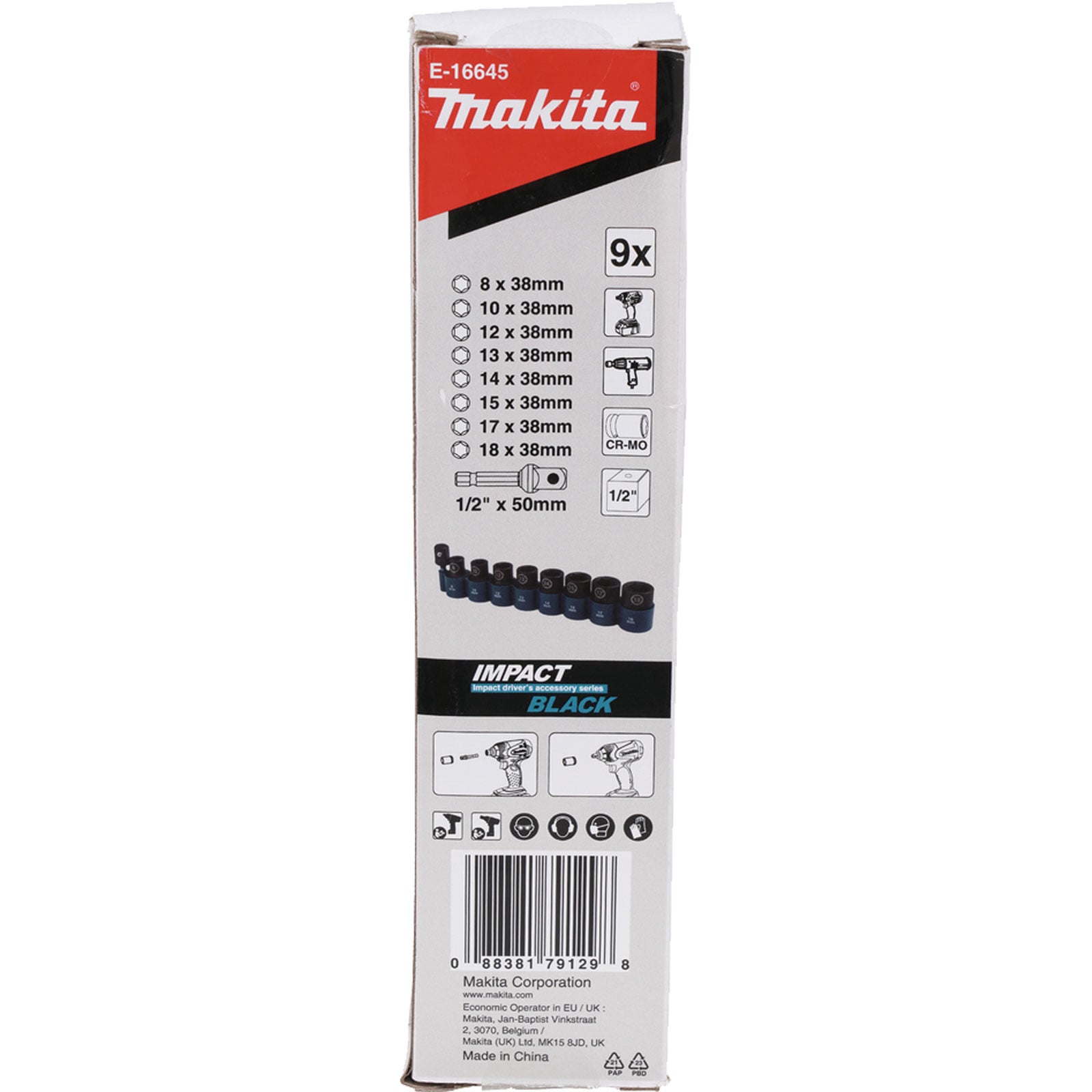 - 1x Makita E-16645 Steckschlüssel-Set 9tlg. 1/2" Impact Black bestehend aus: