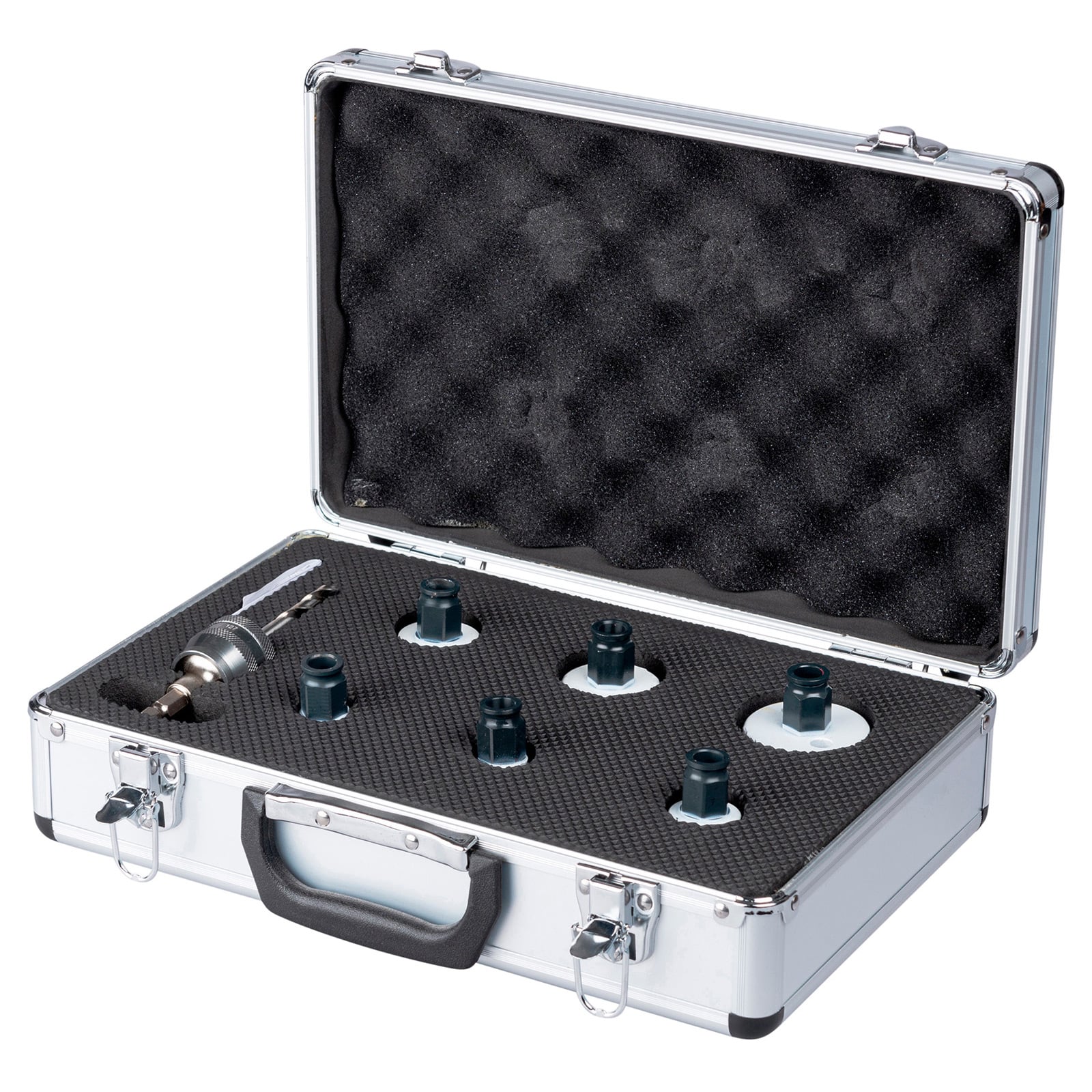 - Das EZYCHANGE Lochsägen Elektriker-Set Ø 16 bis 51 mm im praktischen Transportkoffer beinhaltet einen Adapter mit 6-kant-Aufnahme für Schnellspannbohrfutter bis 13 mm-Aufnahme inkl. präzisionsgeschliffenem HSS-G Zentrierbohrer und sechs HSS BiM-Lochsägen in gängigen Größen für den Bereich Elektro.