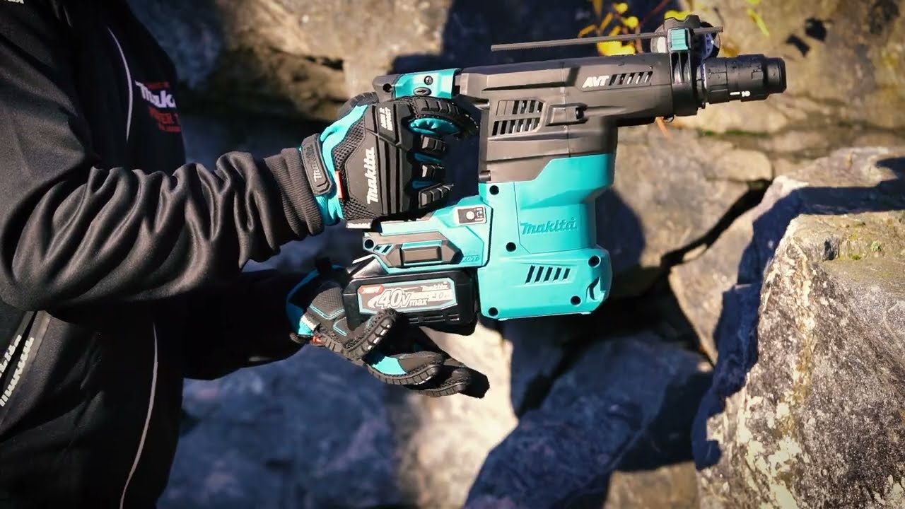 - Leistungsstarker 40 V max. Akku-Kombihammer mit SDS-PLUS-Werkzeugaufnahme mit Schnellwechselbohrfutter.