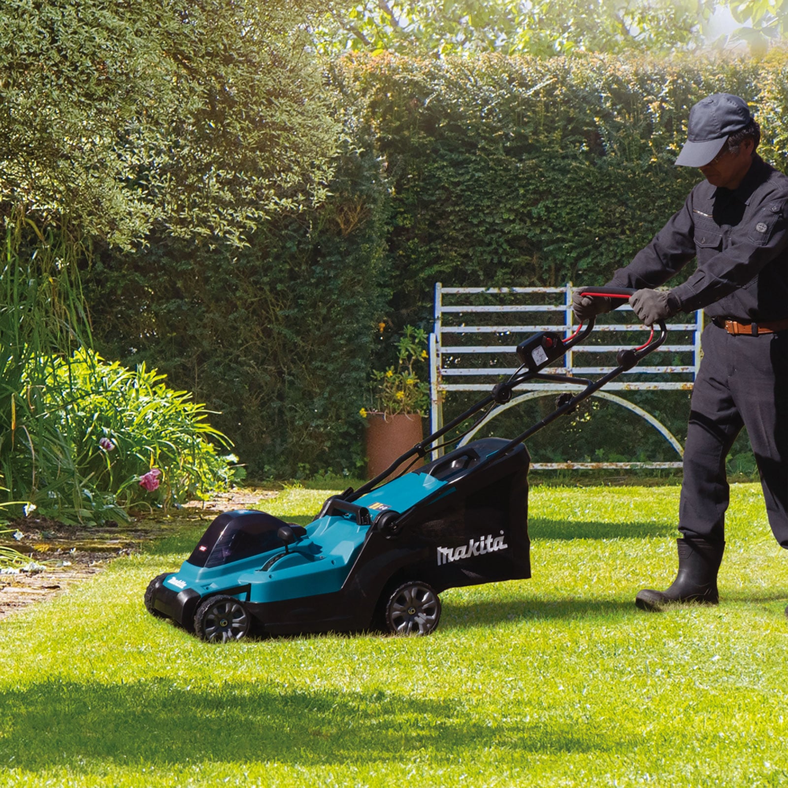 - ein Akku-Rasenmäher mit 40V max. Antrieb für kleine bis mittlere Rasenflächen