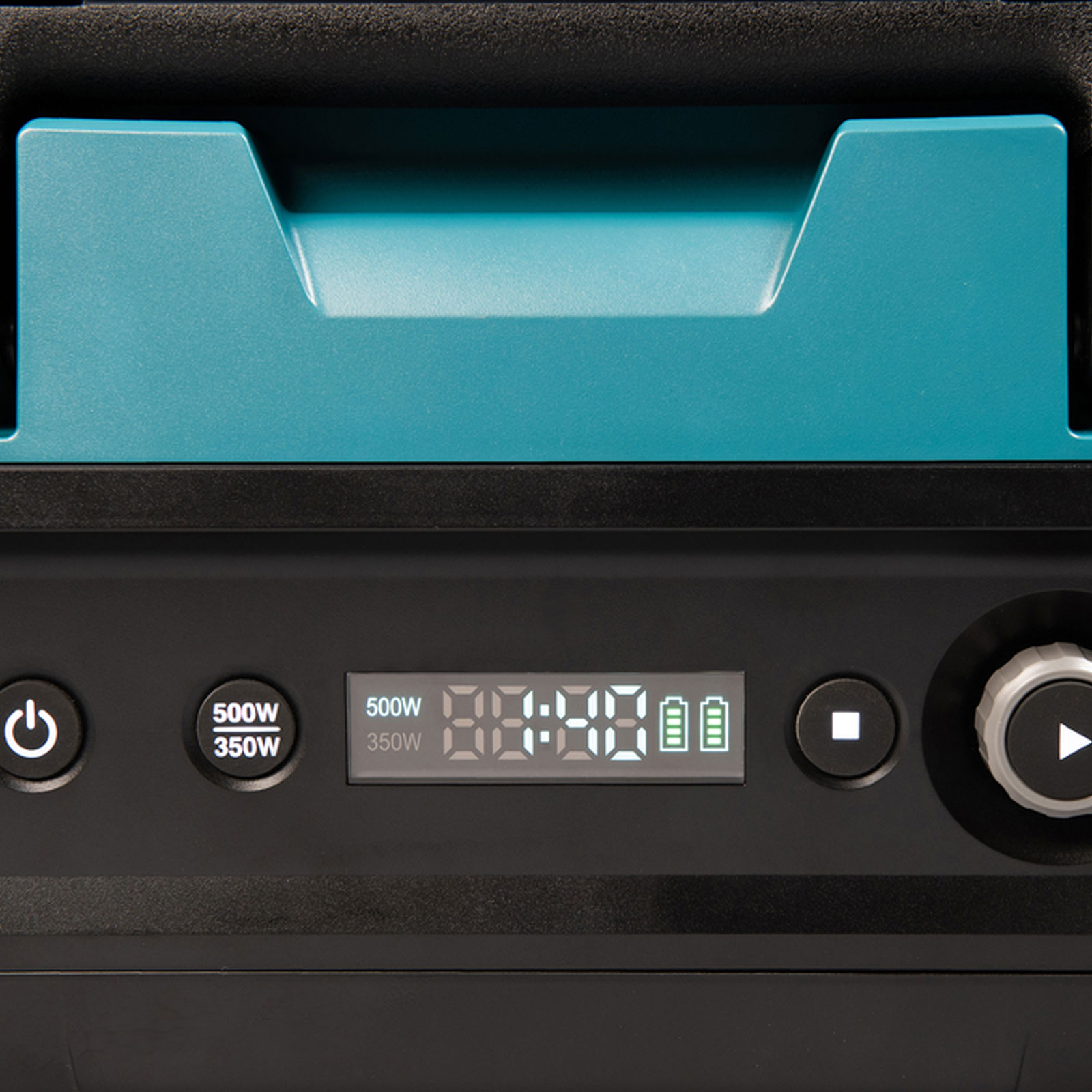 - LED-Display mit Anzeige der Restlaufzeit und verbleibender Akku-Kapazität
