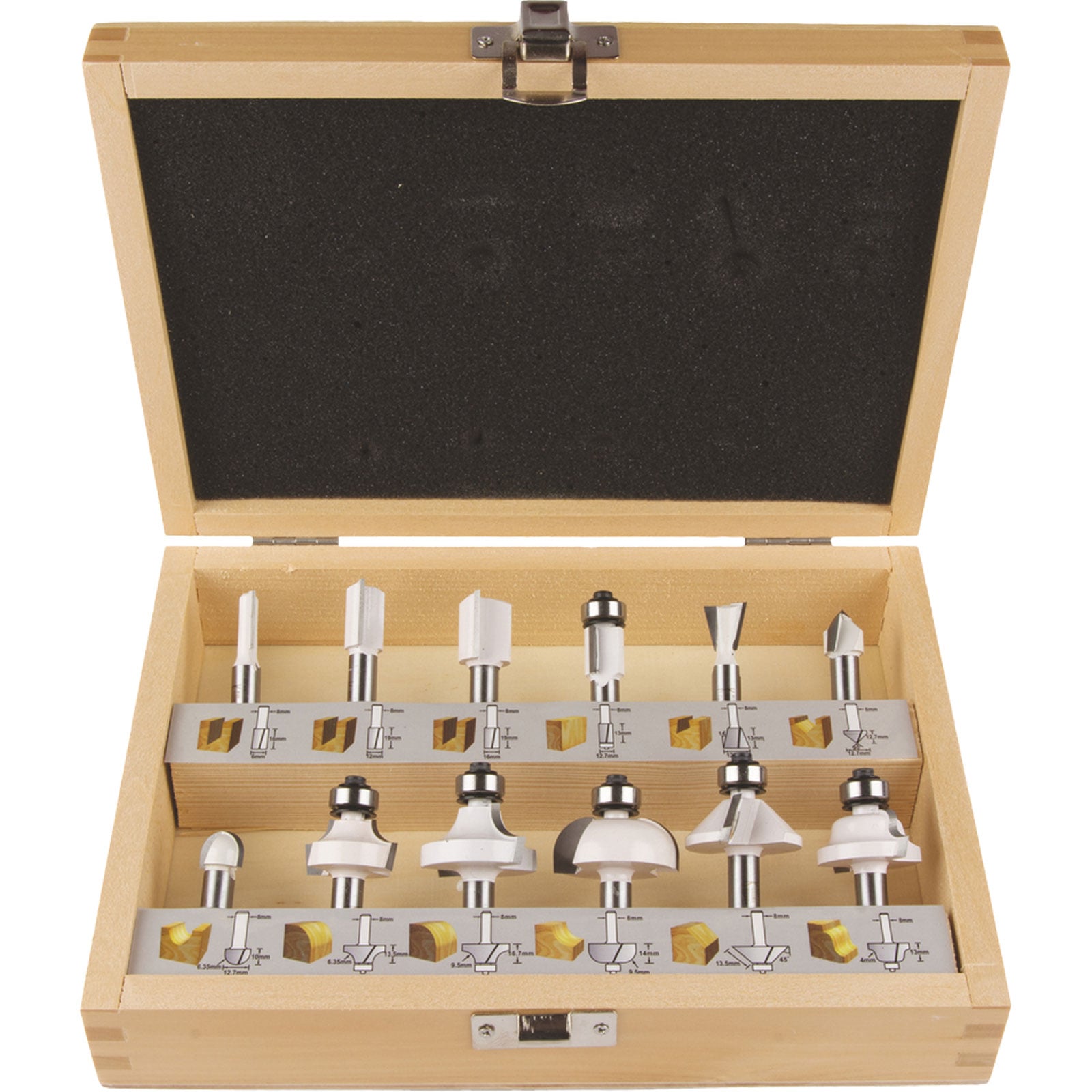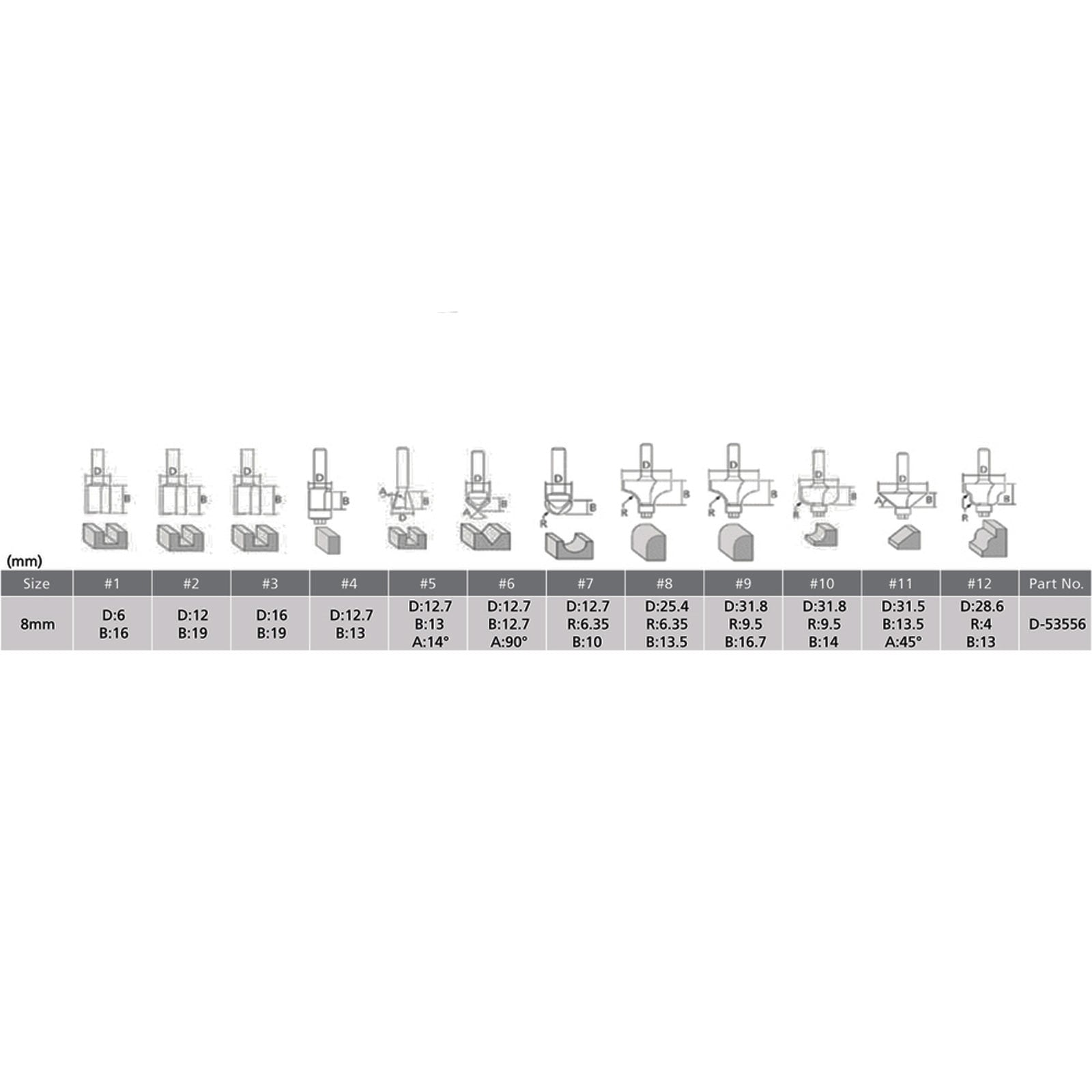 - eine kompakte Oberfräse mit einem starken 1.100 W Motor für Fräser mit 8 mm Schaftdurchmesser