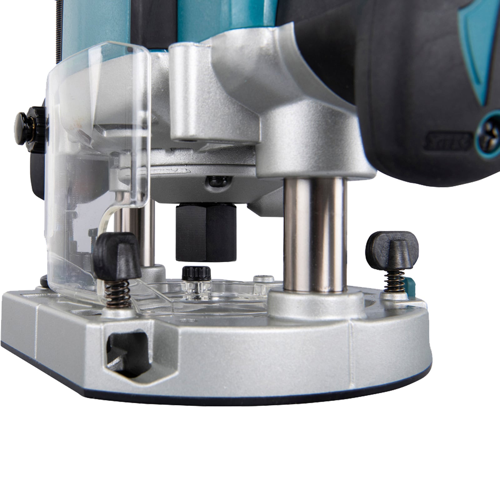 - Werkzeugloser Kopierhülsenwechsel. Schnellverstellung der Eintauchtiefe mit Präzisionssteuerung und drei voreingestellten Tiefenanschlägen sowie leicht ablesbare Tiefenskalen.