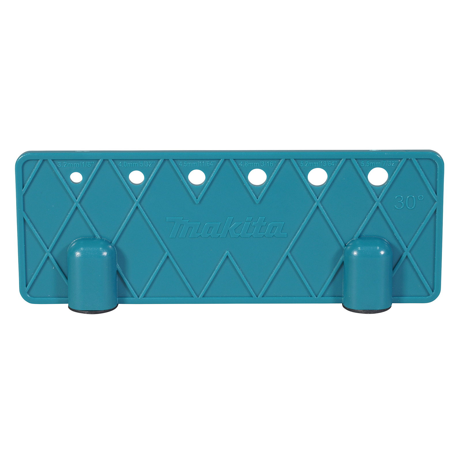 - Mit den Lochungen an der Schärfhilfe lässt sich der benötigte Rundfeilendurchmesser ermitteln.