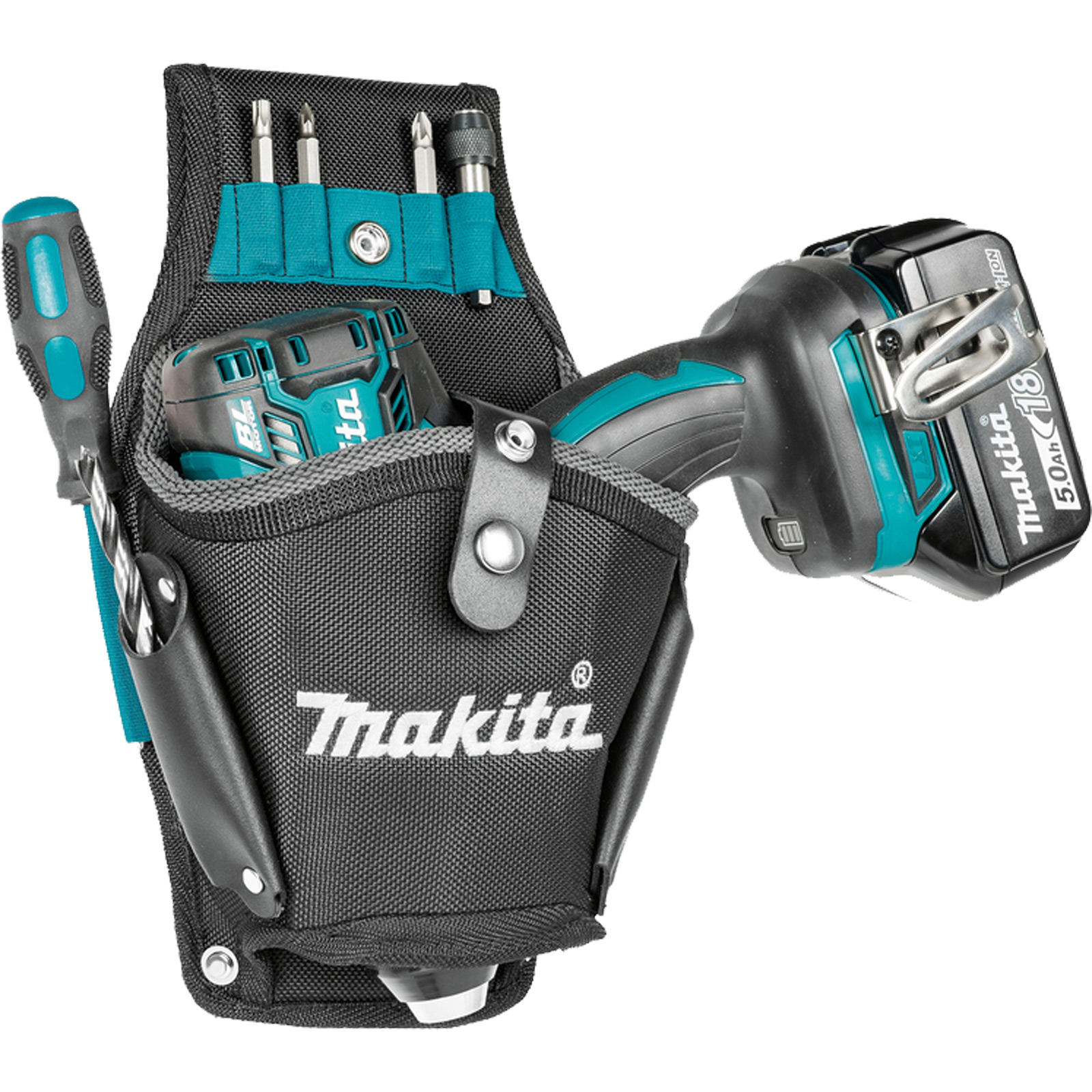 - Der Schraubenholster verfügt über eine Sicherung des Akku-Schraubers durch eine Befestigungsschlaufe und sorgt damit für ein sicheres Arbeiten auf Leitern, Dächern oder Gerüsten.