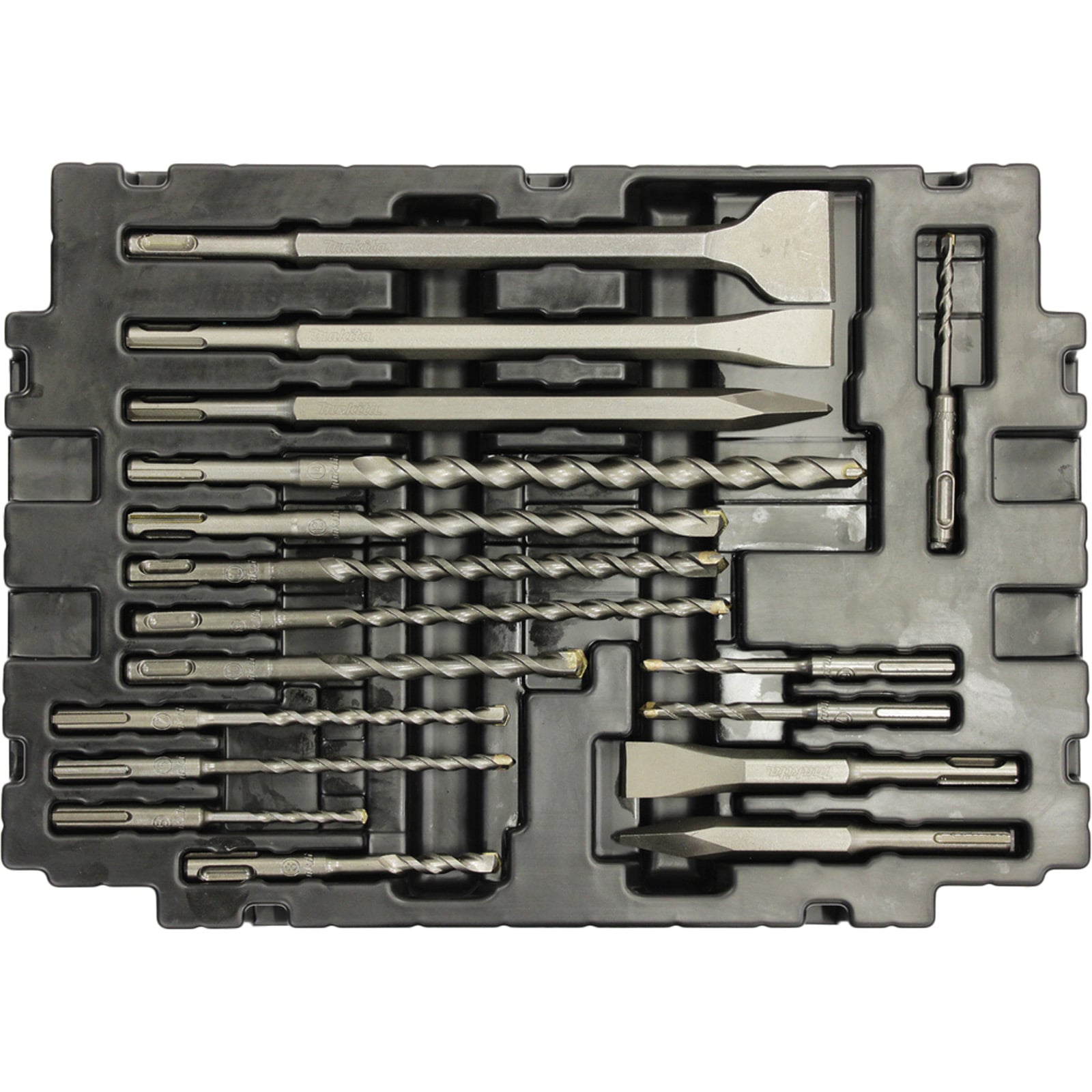 - Das 17tlg. Set besteht aus 12 Hammerbohrern und 5 Meißeln.