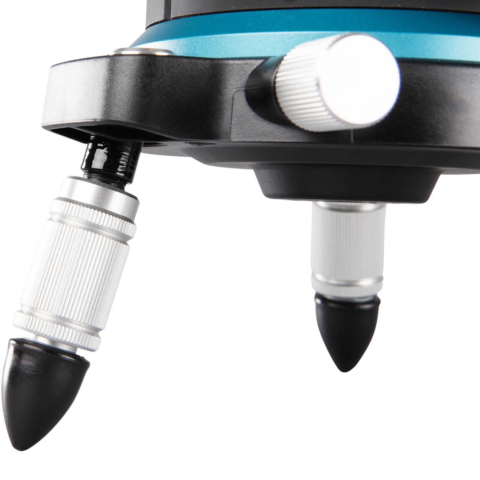 - Der Laser ist staub- und spritzwassergeschützt mit IP54-Schutzklasse, seine Laufzeit mit einer 4,0 Ah-Akkuladung beträgt etwa 40 Stunden.