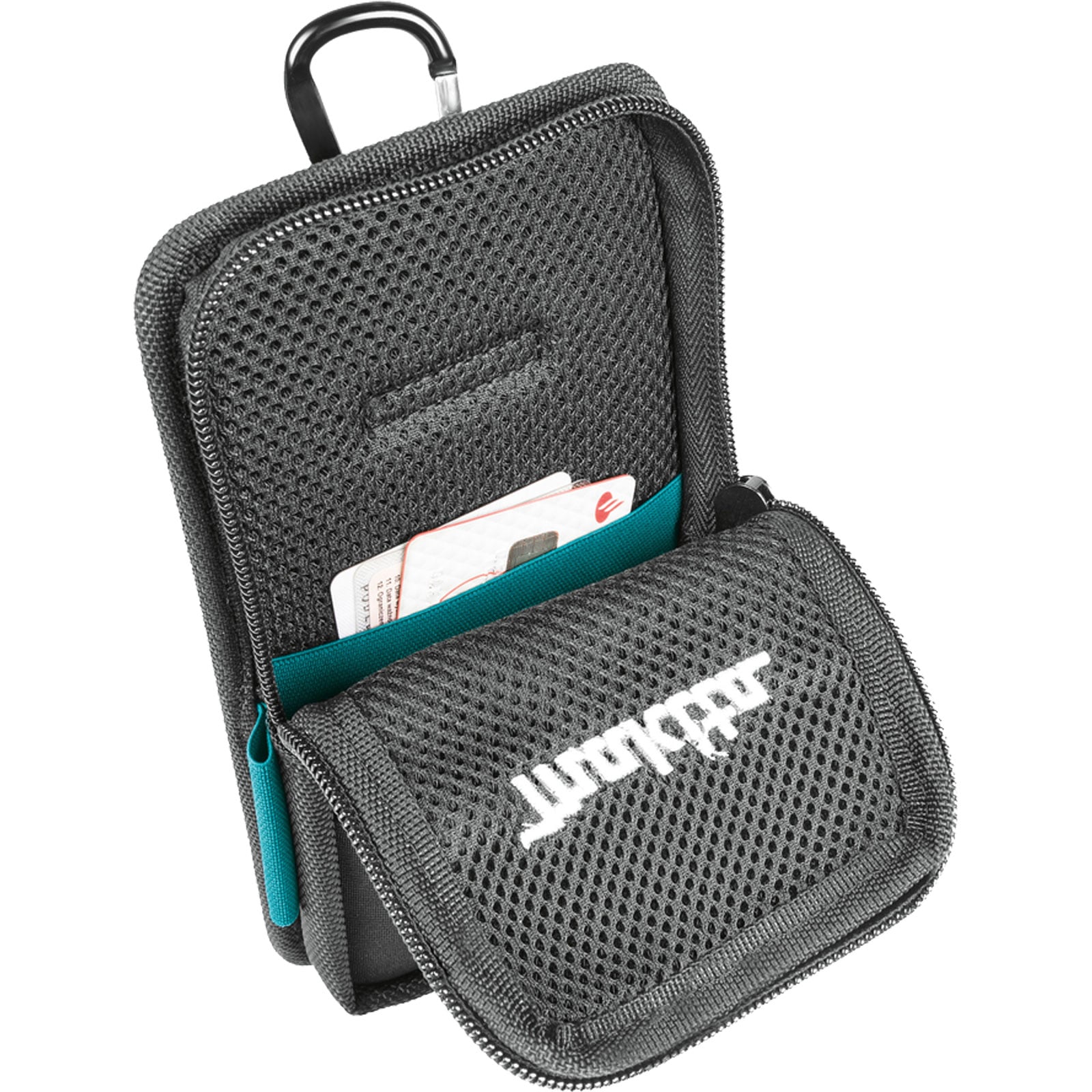- Die Tasche verfügt zudem über zwei Visitenkartenfächer, zwei elastischen Schlaufen für bspw. Kugelschreiber sowie einen Karabinerhaken und einen Kunststoffclip.