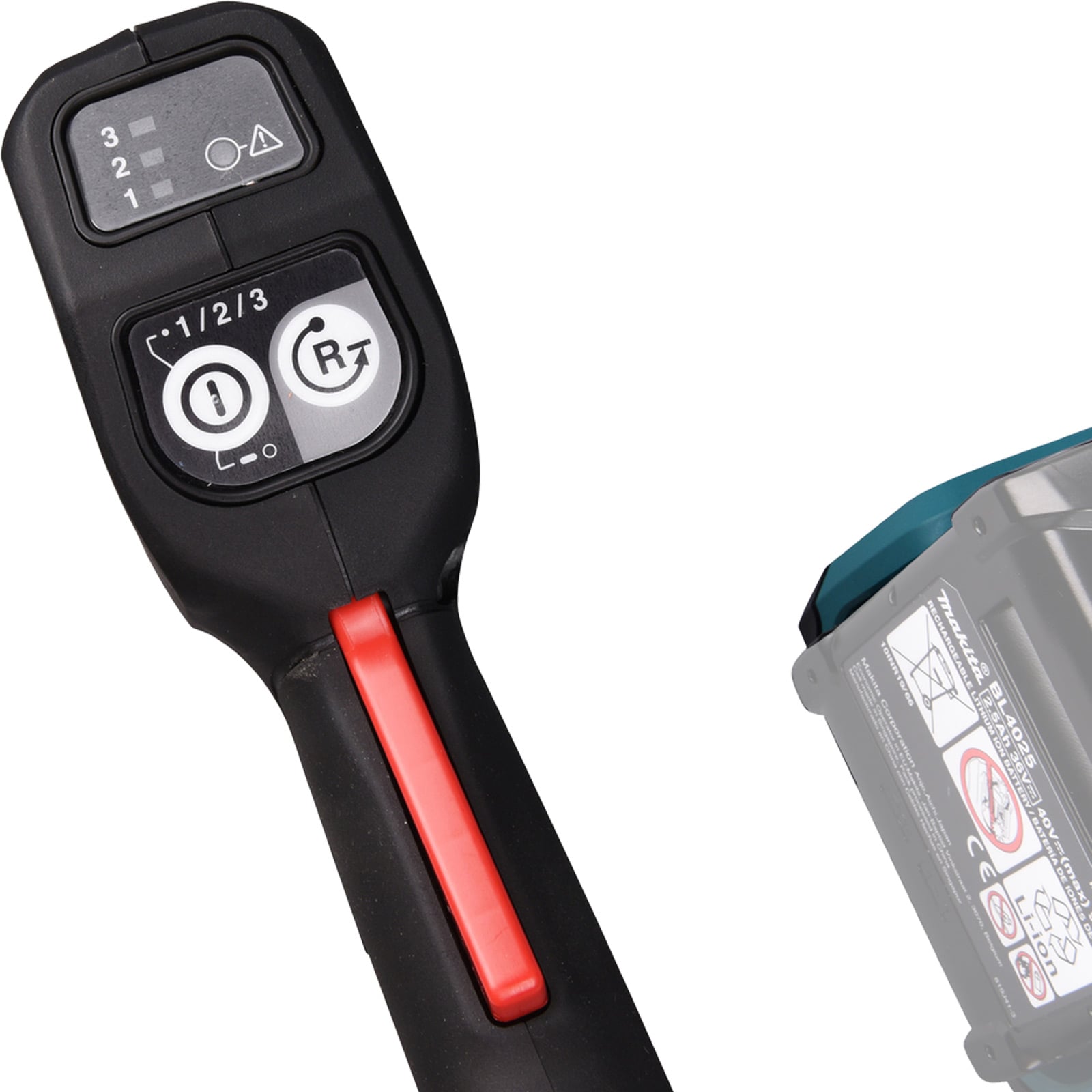 - Das 40 V max. Gerät verfügt über drei Geschwindigkeitsstufen sowie einen Rückwärtslauf, der das Scherblatt im Falle einer Blockade schnell wieder befreien kann.