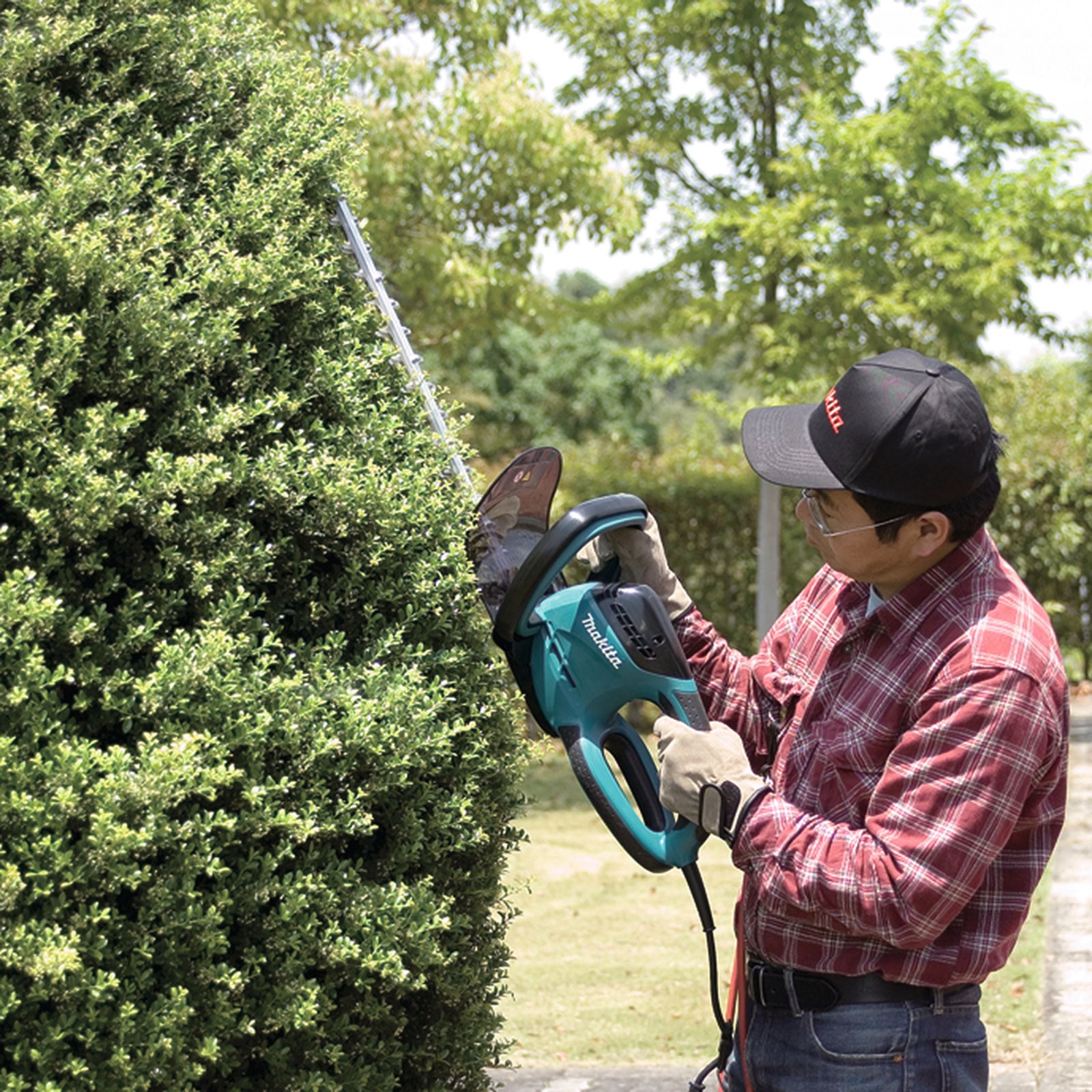 - eine 670 W Elektro-Heckenschere mit einem 55 cm Messerbalken für die Gartenpflege