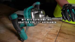 Besonders leistungsfähiges Akku-Rührgerät mit 2-Gang-Getriebe für Spachtelmassen und Putz in Chargen von bis zu 90 kg. Der doppelte D-Griff ermöglicht ein einfaches manövrieren und einen festen Halt. Für Rührkörbe mit einem Durchmesser von bis zu 240 mm. Mit M14-Aufnahme inkl. Adapter für 1/2". Eine Akku-Abdeckung schützt den Akku vor Verschmutzung.