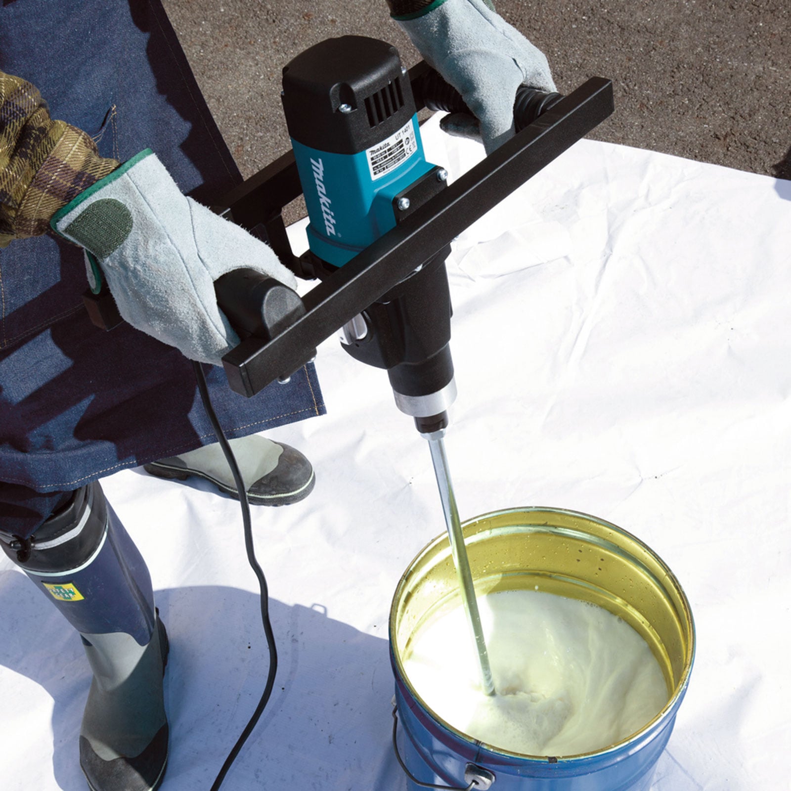 - ein leichtes 1.300 W Rührgerät für Spachtelmassen und Putz in Chargen von bis zu 60 kg