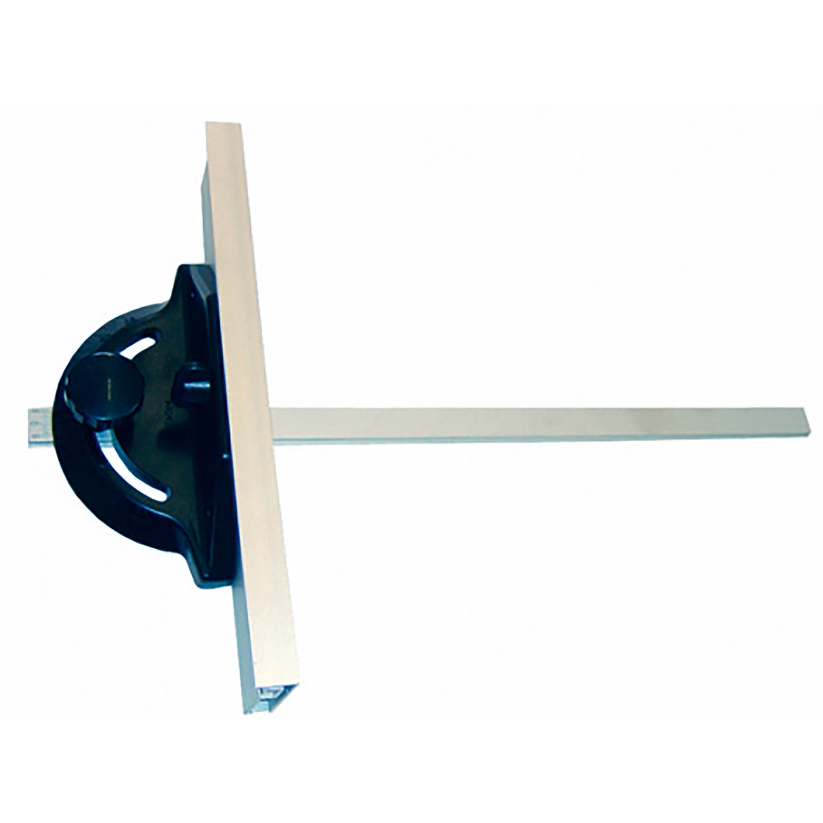 - Der Winkelanschlag wird in die Schiene auf dem Sägetisch gesteckt und kann präzise über eine Skala auf den gewünschten Gehrungswinkel von 60° bis -60° eingestellt werden.