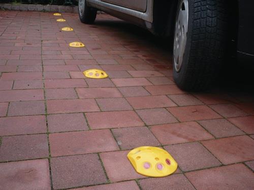 aus Polypropylen Farbe gelb mit weißen/roten Reflektoren für dauerhafte Markierung inkl. Drehstiftnägel VE : 10 Stück