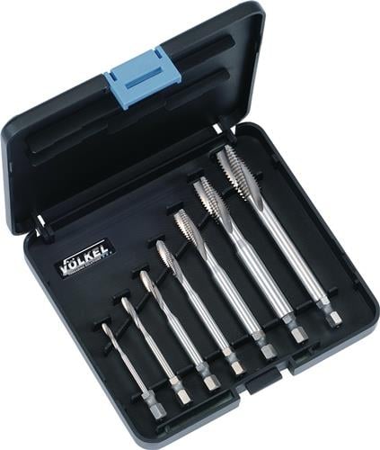 M3-M12 HexDRIVE HSS-Co · mit 6,3 mm (1/4")-Sechskantschaft · metrisches ISO-Gewinde · für gut zerspanbare Werkstoffe bis 900 N/mm² · unlegierte und niedriglegierte Stähle Inhalt: je 1 Stück MGB DIN 371 M3/ M4/ M5/ M6/ M8/ M10 DIN 376 M12 Lieferung in Kunststoffkassette Weitere technische Eigenschaften: · Inhalt: 7-teilig
