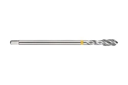Spiral genuteter Gewindebohrer Yellow Shark · Anschnittform C mit 2-3xP Gewindeanschnitt · ISO-Metrisches Feingewinde M18 mit 1.00 mm Steigung und 6H Toleranzklasse · Abmessungen nach DIN 374 Standard mit 14.0mm Schaft und 11.0mm Vierkantantrieb · HSSE-PM mit Glanzchrom-Oberfläche und 40° Helixwinkel 2xD Sacklochgewinde in Baustahl und Kohlenstoffstahl und Kupfer oder Kupferlegierungen Weitere technische Eigenschaften: · Schneidrichtung: Rechts · Schaft-Ø: 14 · Einspannlänge - Metrisch (LSC): 14 · Schaft: Zylindrischer Schaft mit Vierkant