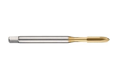 Spiralpunkt Gewindebohrer · Anschnittform B mit 3.5-5xP Gewindeanschnitt · ISO-Metrisches Gewinde M27 mit 3.00 mm Steigung und 6H Toleranzklasse · Abmessungen nach DIN 376 Standard mit 20.0mm Schaft und 16.0mm Vierkantantrieb · HSSE-PM mit TiN Beschichtung 2.5xD Durchgangsgewinde in Stahl und Stahlguss · Ferritischer · Martensitischer und Austenitischer Edelstahl und Reinaluminium oder Aluminiumguss Weitere technische Eigenschaften: · Schneidrichtung: Rechts · Schaft-Ø: 20 · Einspannlänge - Metrisch (LSC): 19 · Schaft: Zylindrischer Schaft mit Vierkant