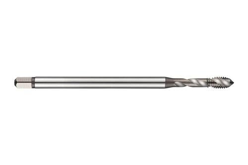Spiral genuteter Gewindebohrer mit langem Schaft · Anschnittform C mit 2-3xP Gewindeanschnitt · ISO-Metrisches Gewinde M6 mit 1.00 mm Steigung und 6H Toleranzklasse · Abmessungen nach ISO 2283 Standard mit 6.3mm Schaft und 5.0mm Vierkantantrieb · HSSE-PM mit blanker Oberfläche und 40° Helixwinkel 2xD Sacklochgewinde in Allzweckanwendungen Weitere technische Eigenschaften: · Schneidrichtung: Rechts · Schaft-Ø: 6.3 · Einspannlänge - Metrisch (LSC): 8 · Schaft: Zylindrischer Schaft mit Vierkant